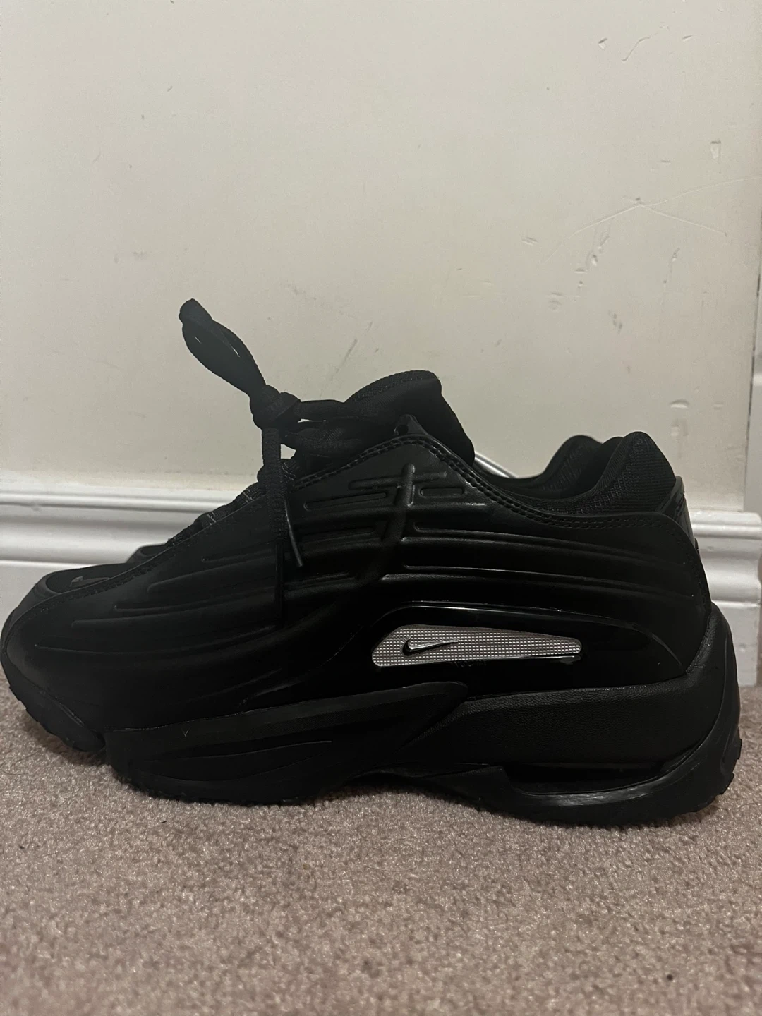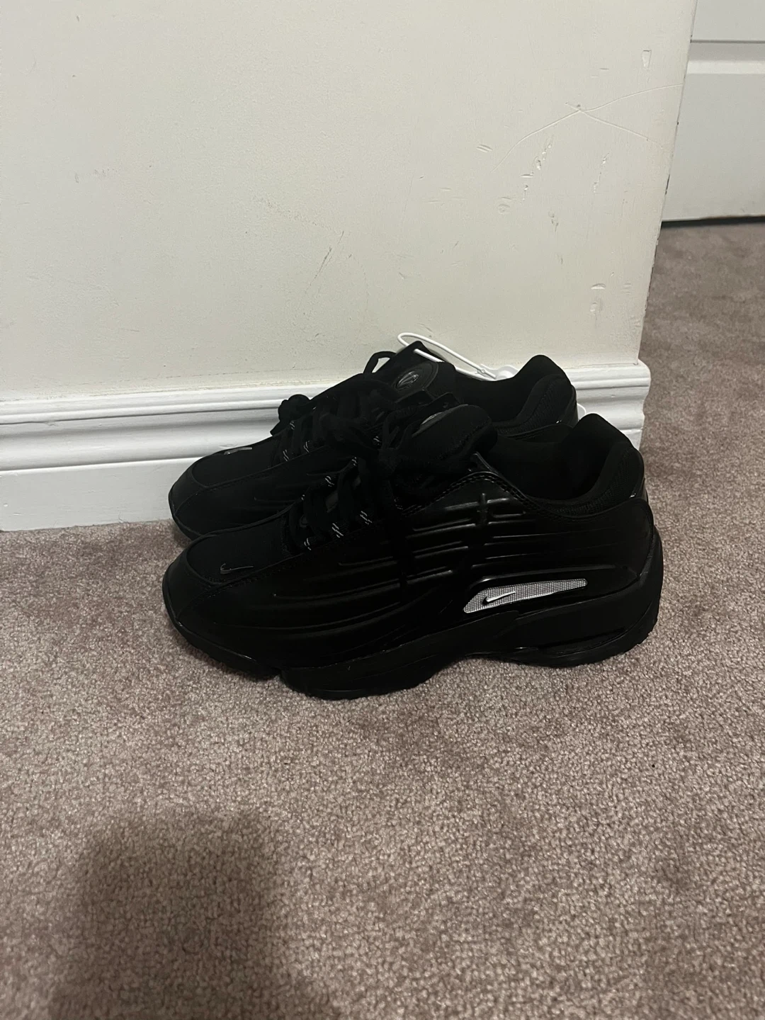 Black Nike NOCTA Hot Step 2 shoes. These men's sneakers feature a sleek black design with the iconic Nike swoosh.