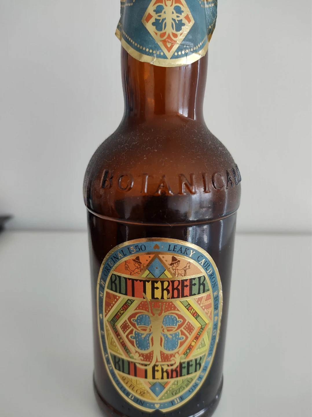 A bottle of Butterbeer from the Leaky Cauldron. This is a 275 ml empty bottle of Butter beer from the iconic Harry Potter and the cursed child show.