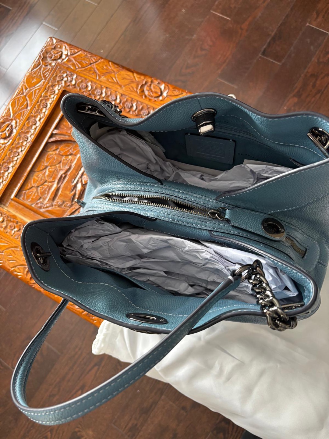 1 / 41 / 4Buy & SellCoach Pebbled Leather Chain Shoulder BagCoach Pebbled Leather Chain Shoulder Bag$110Beautiful teal blue leather handbag. Features a chain strap and zip closure. Comes with dust bag.ConditionNewBrandCoachWHERE TO MEETSteeles & BathurstView MapSELLERverifiedLeilaBathurst Manor1469 reviews2 chats·2 favorites·112 viewsSEND CHAT TO SELLERHi Leila! I’m interested in your listing.Hi Leila! I’m interested in your listing.Get the Karrot app to chatSign In to chat