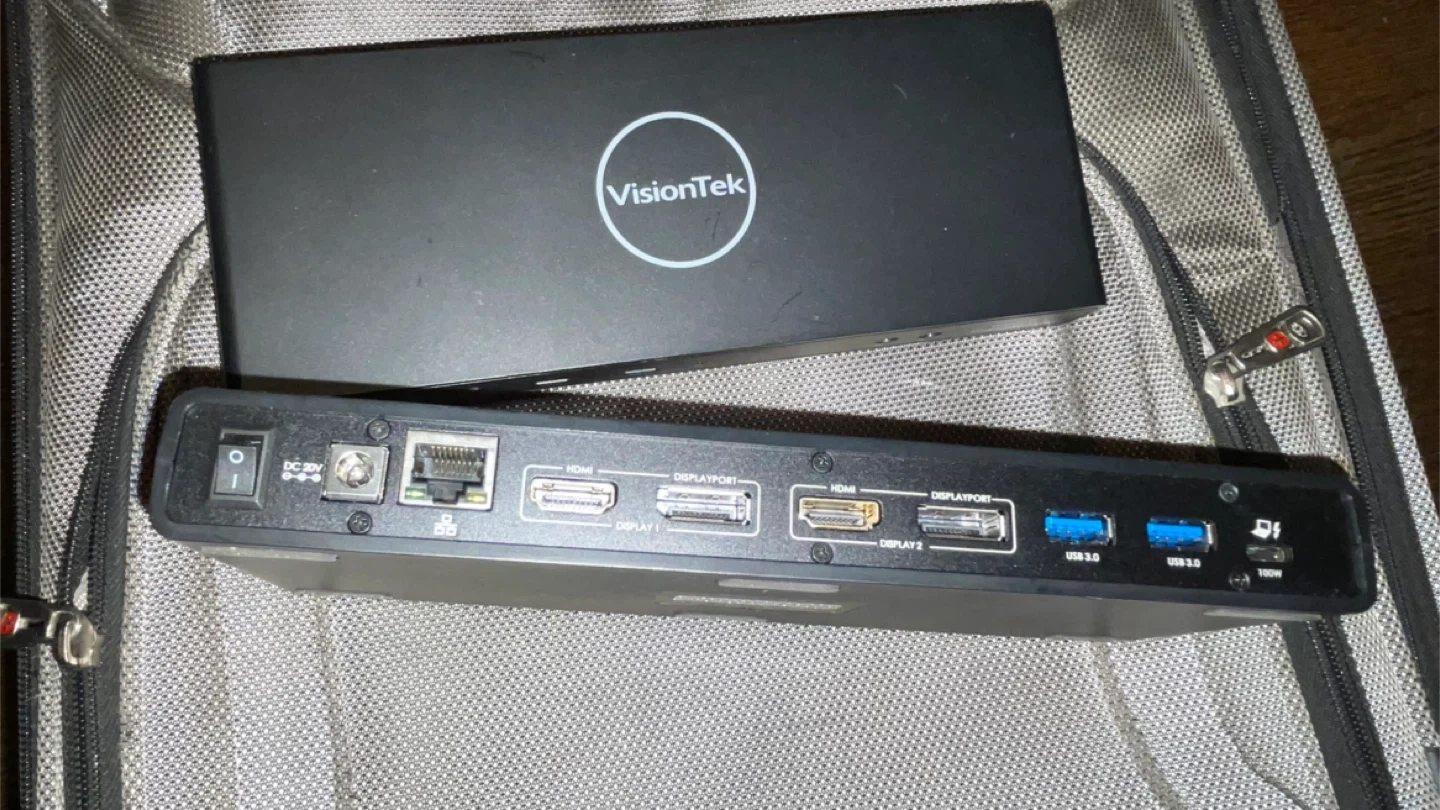 VisionTek VT4510 dual display docking station. Supports HDMI and DisplayPort outputs. Includes USB 3.0 ports for connectivity. Great for expanding your workspace!
