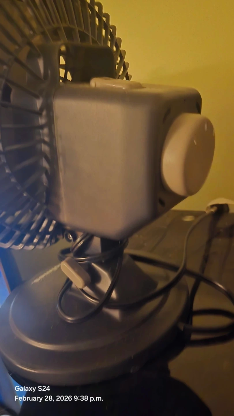 This is a black Blizzard Holmes personal fan. It's a compact desk turning fan with multiple speed settings. Useful for personal cooling in small spaces.