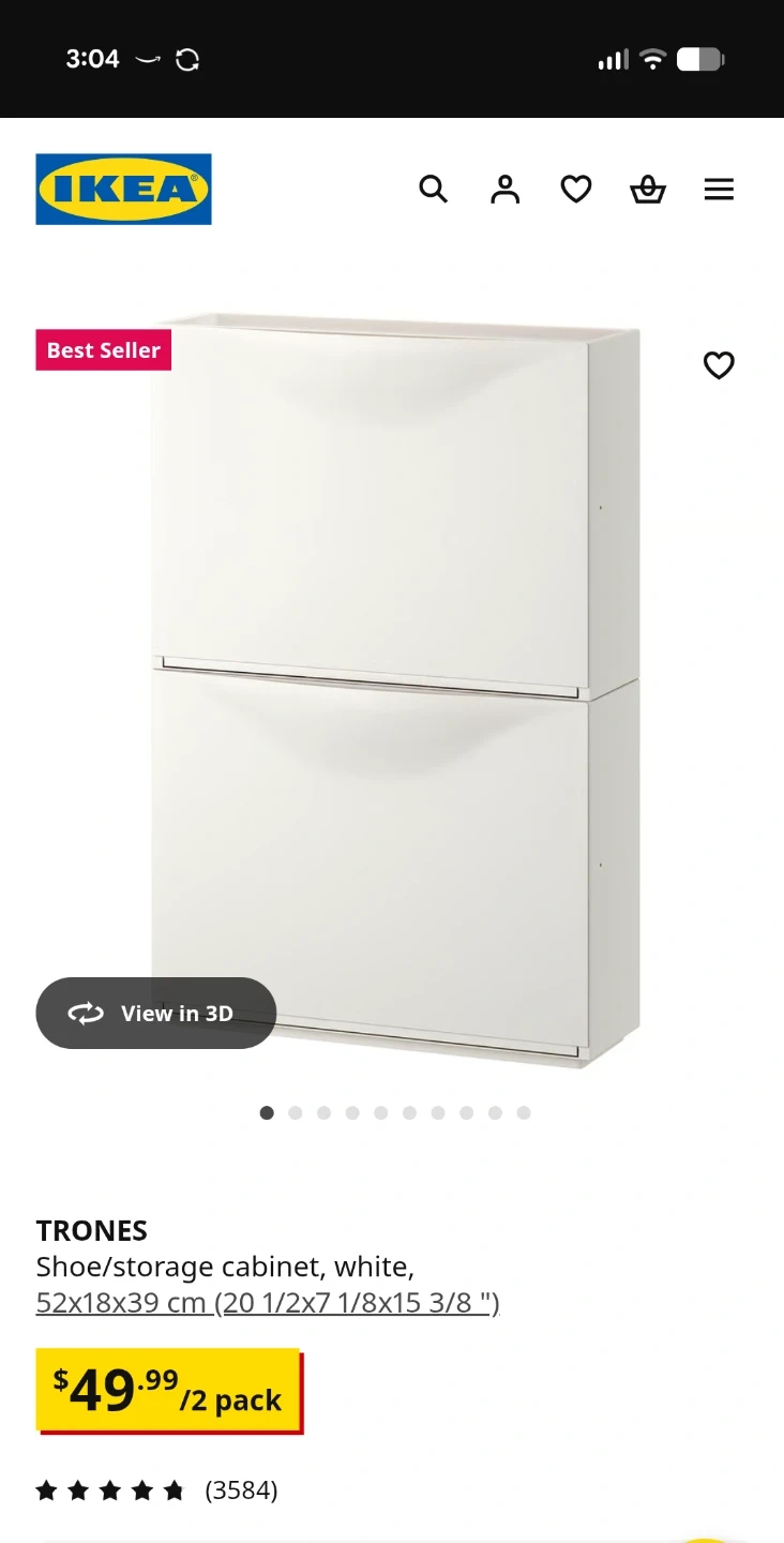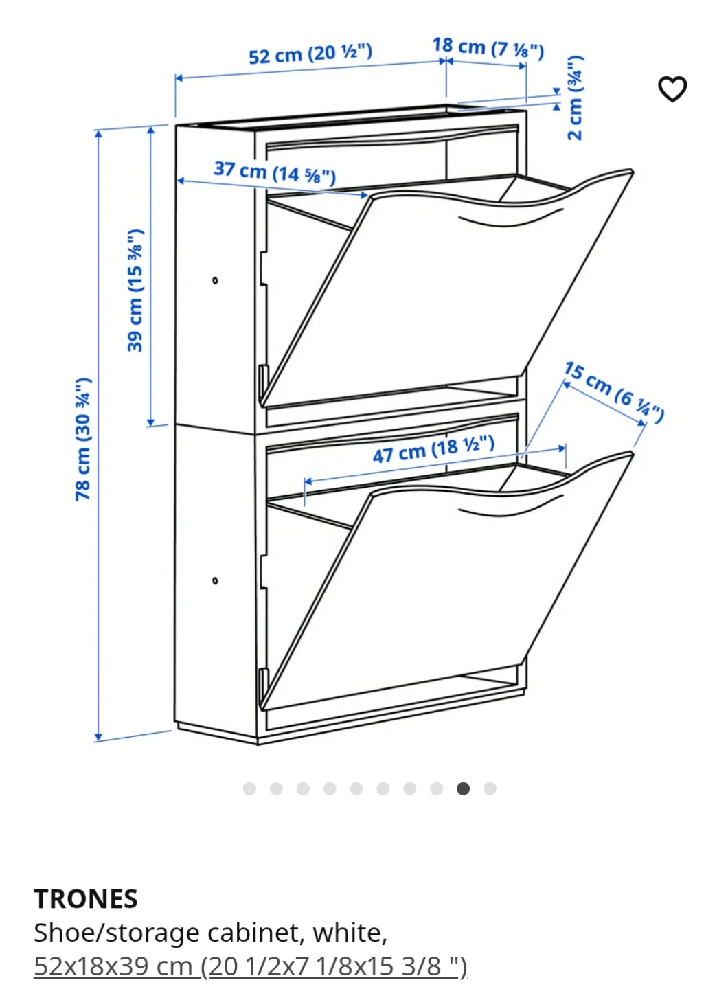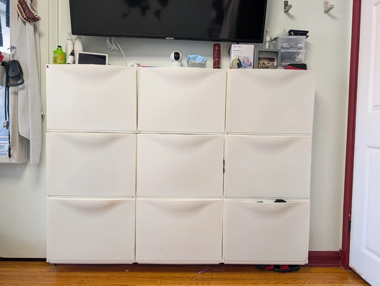 White storage cabinet from Ikea. Some wear and tear but in great condition. Great for small spaces.