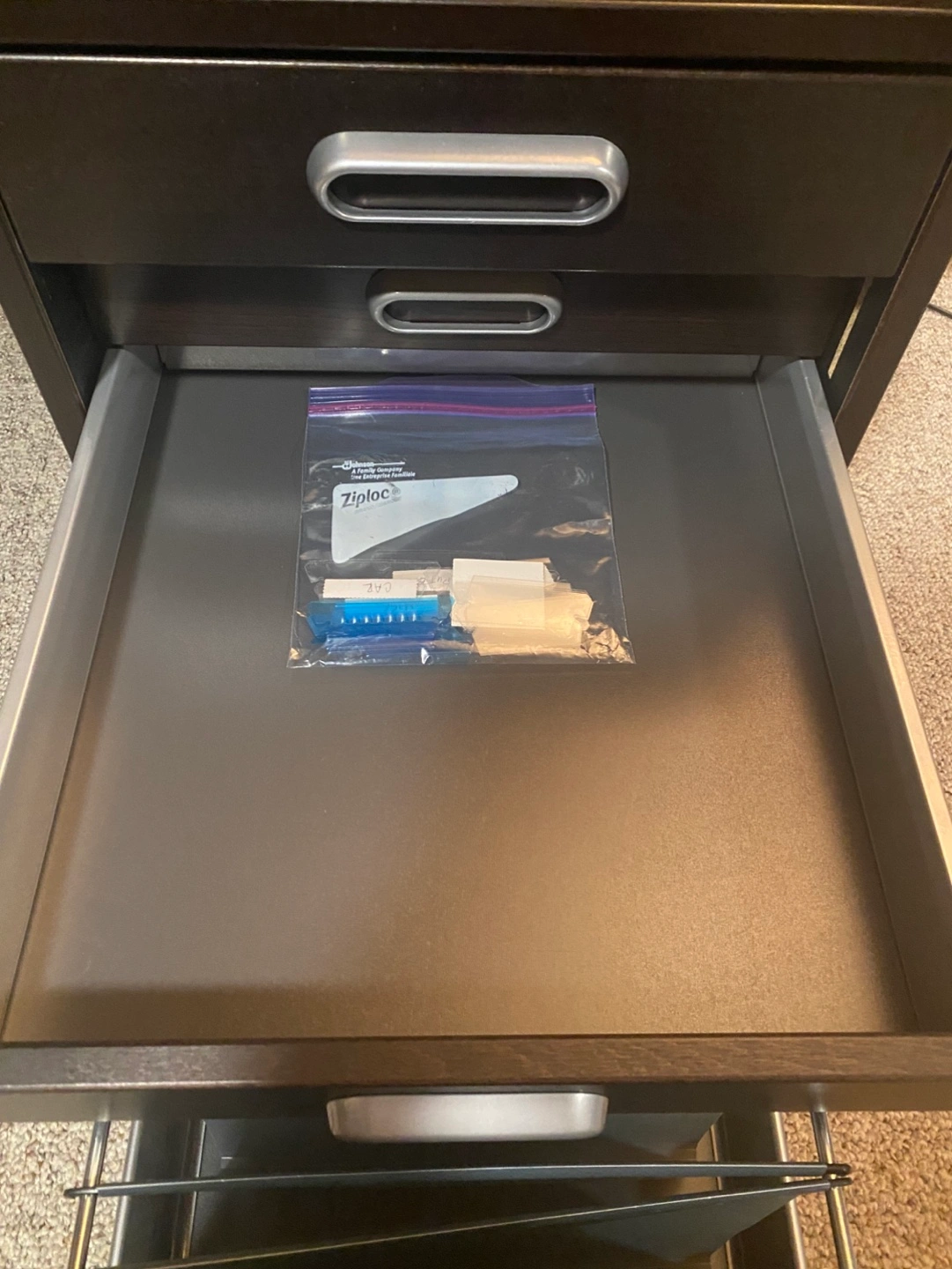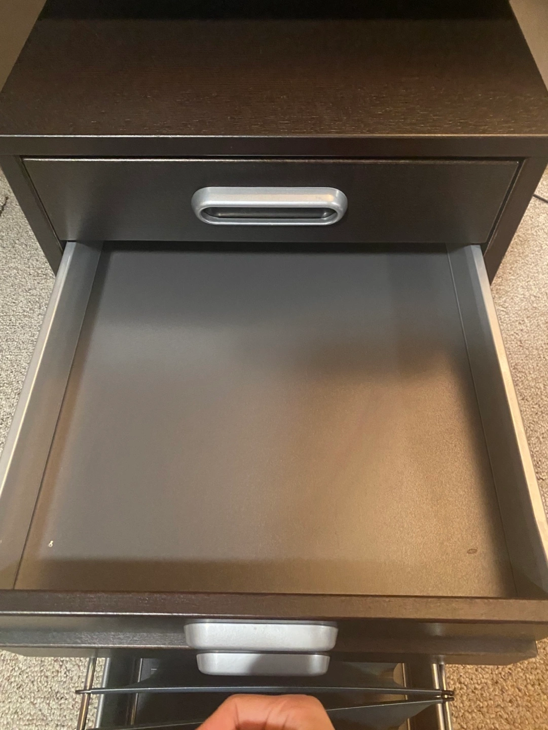 black filing cabinet on wheels with combo lock and 2 hidden sliding drawers