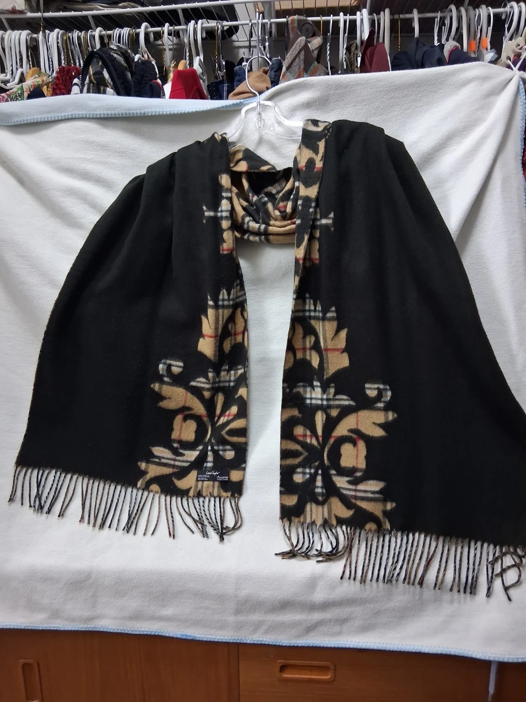 (NO TAG of a Brand )scarf featuring the iconic Nova Check pattern. It's made of soft material and has fringed edges. This scarf adds a touch of luxury to any outfit.