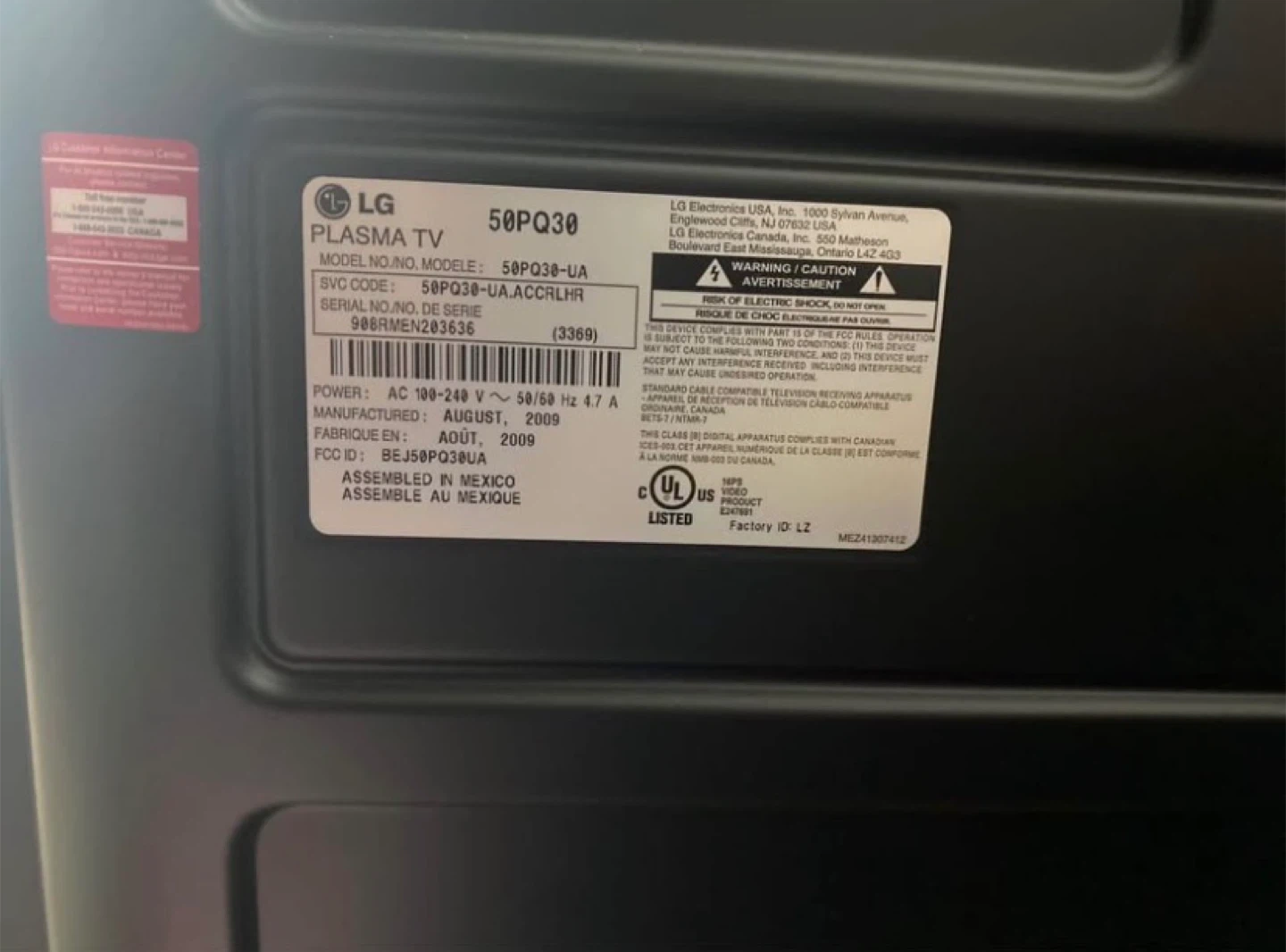 Buy & SellLG 50" Plasma TV 50PQ30LG 50" Plasma TV 50PQ30$90LG 50PQ30 Plasma TV manufactured August, 2009. It's a 50-inch screen. Power requirements are 100-240 V ~ 50/60 Hz 4.7 A.ConditionLike newBrandLGWHERE TO MEETVince's MarketView MapSELLERverifiedChantelleE Gwillimbury Heights711 review0 chats·0 favorites·9 viewsSEND CHAT TO SELLERHi Chantelle! I’m interested in your listing.Hi Chantelle! I’m interested in your listing.Get the Karrot app to chatSign In to chat