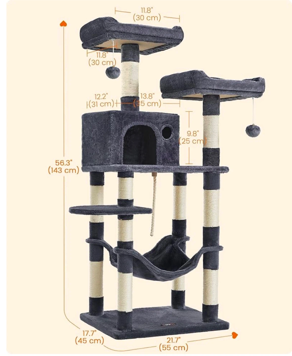 FEANDREA Cat Tree Condo with Hammock and Perches