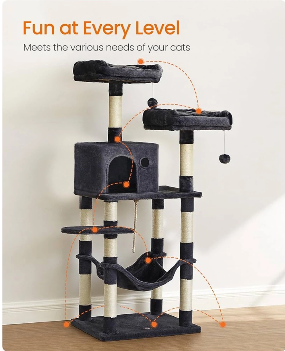 FEANDREA Cat Tree Condo with Hammock and Perches
