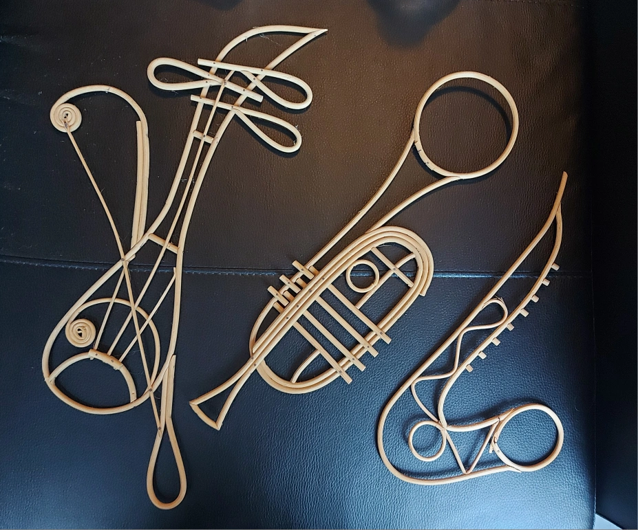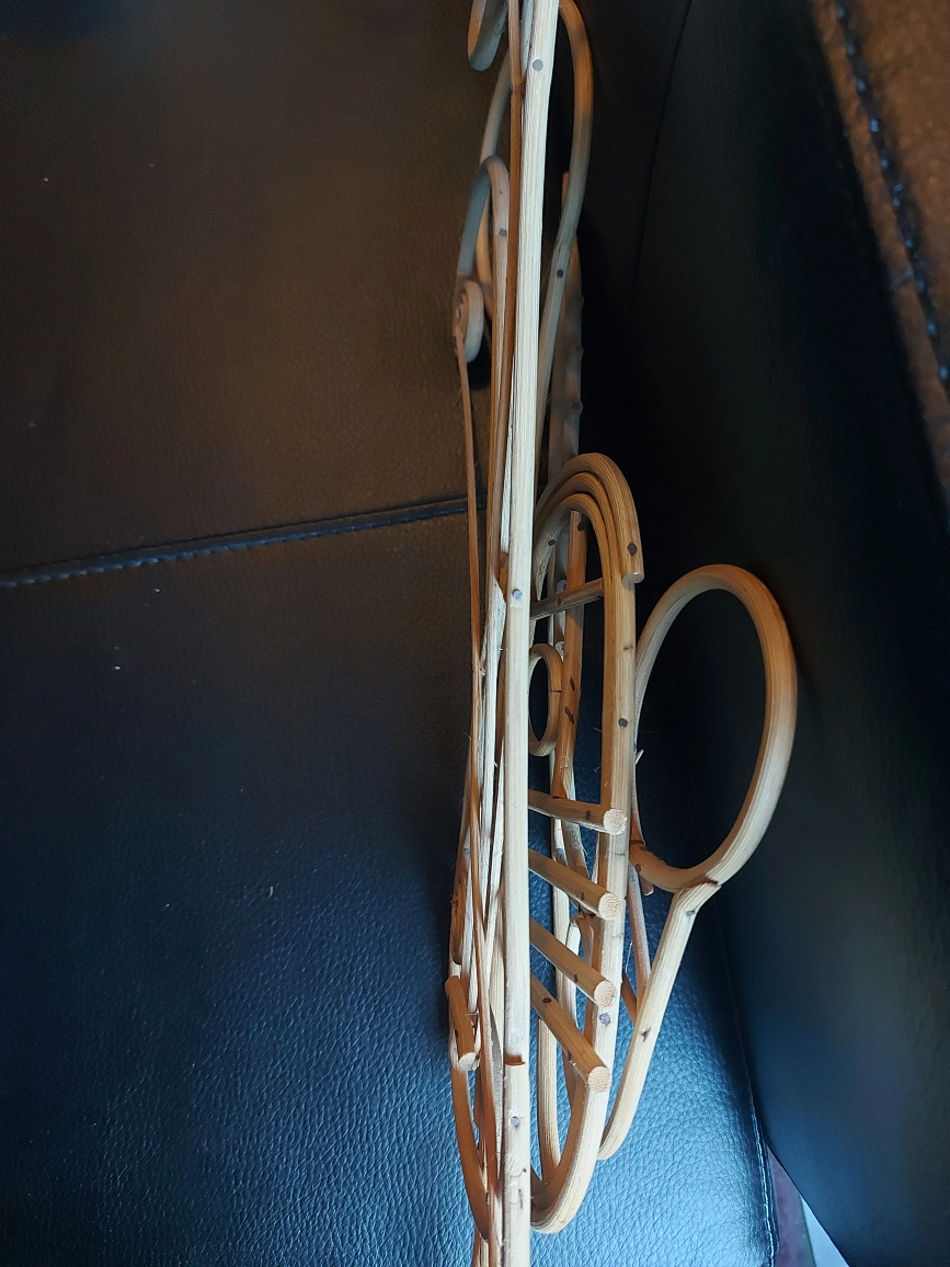lightweight made with basket weave type wood. finishing nails here and there to keep it intact