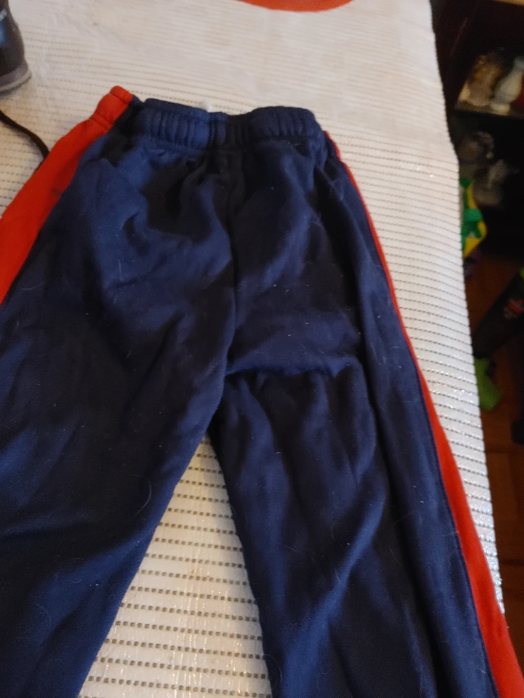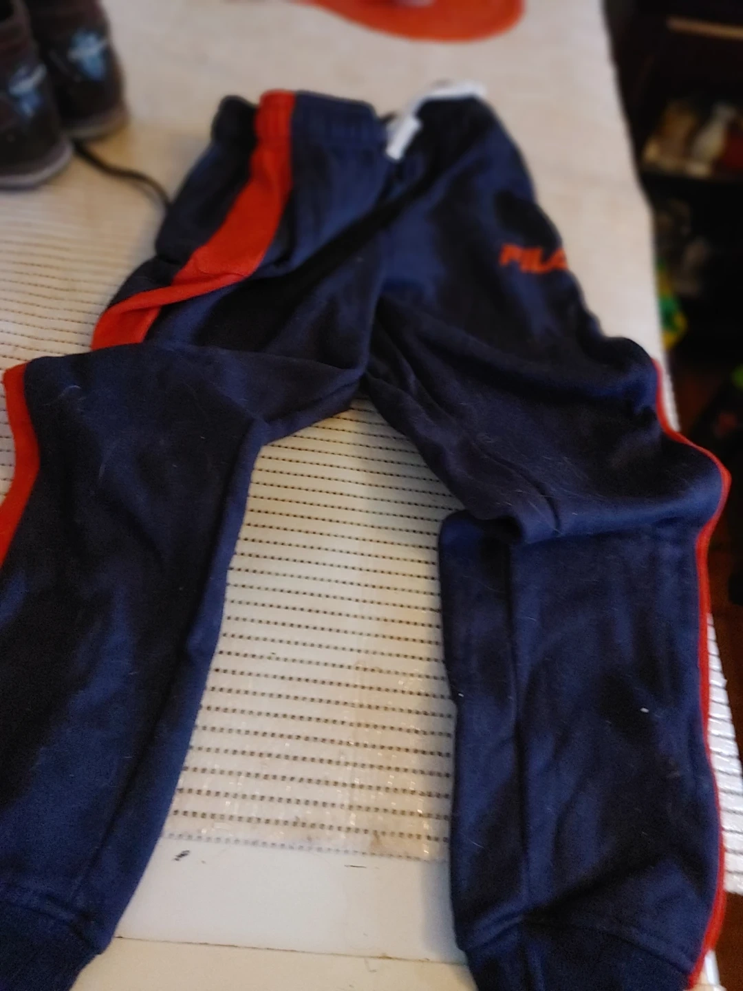 These Fila joggers are a comfy navy blue with a bold red stripe down each side. They feature a drawstring waist for a good fit. Made from a soft material, they're perfect for casual wear.