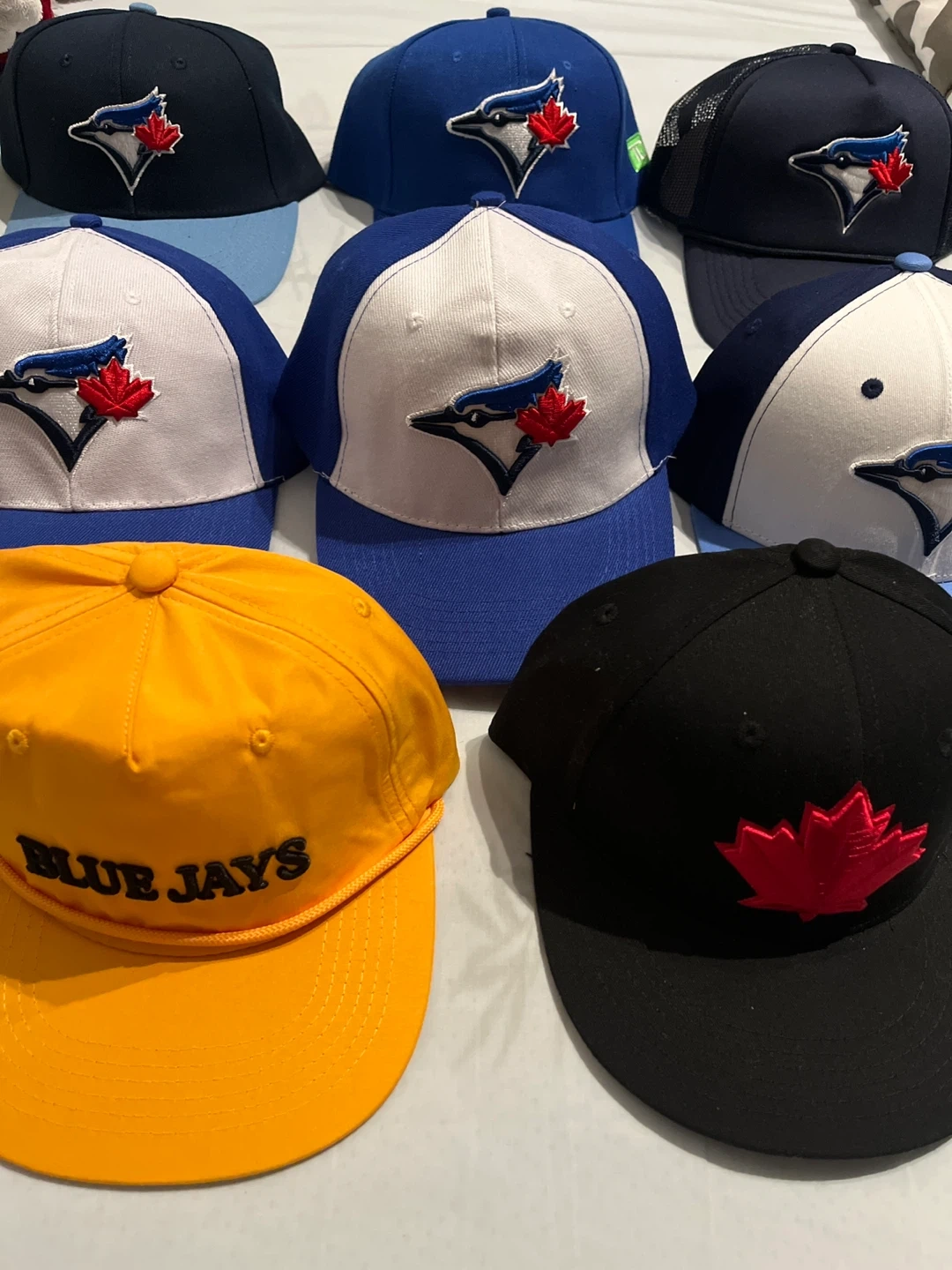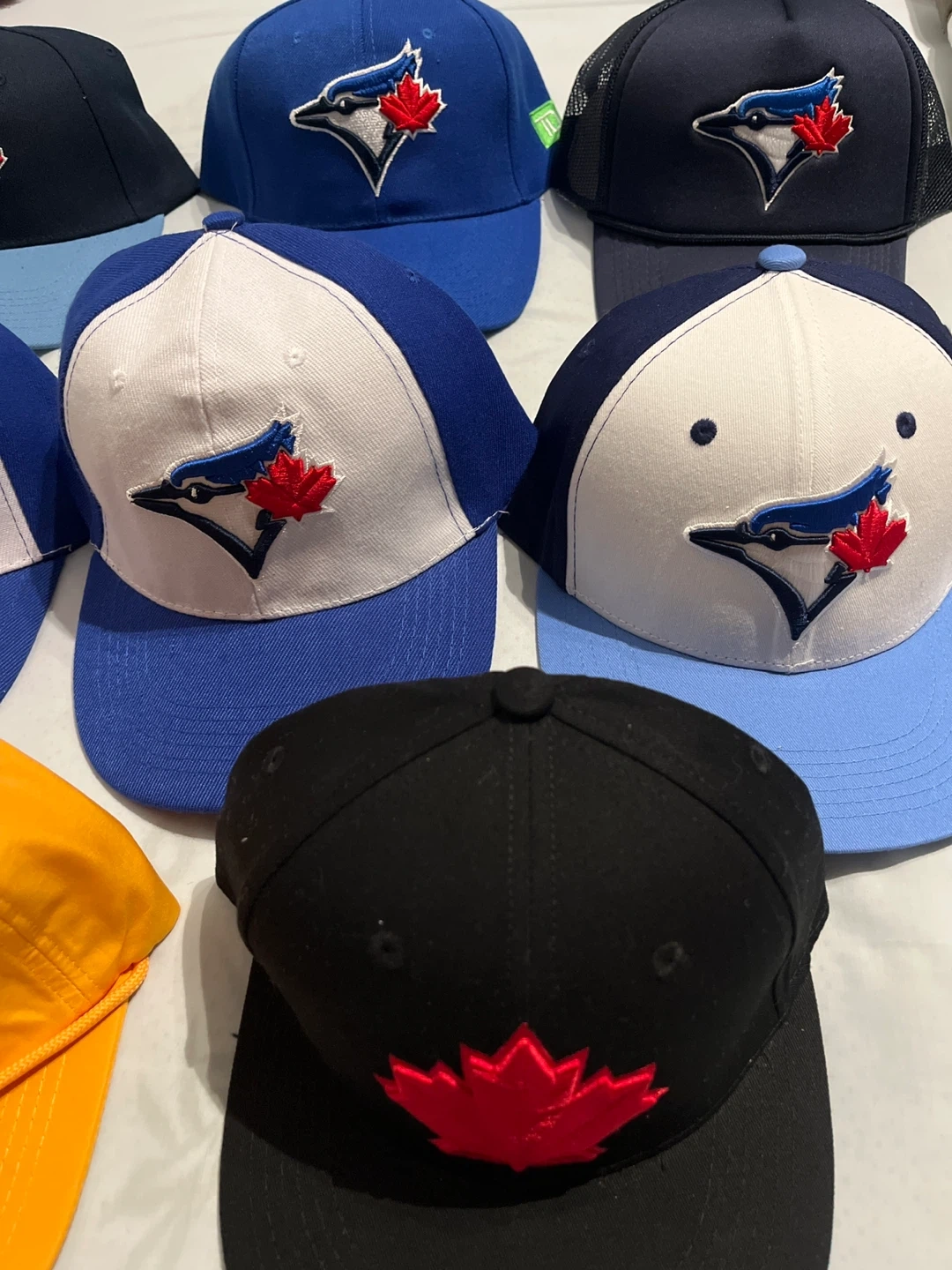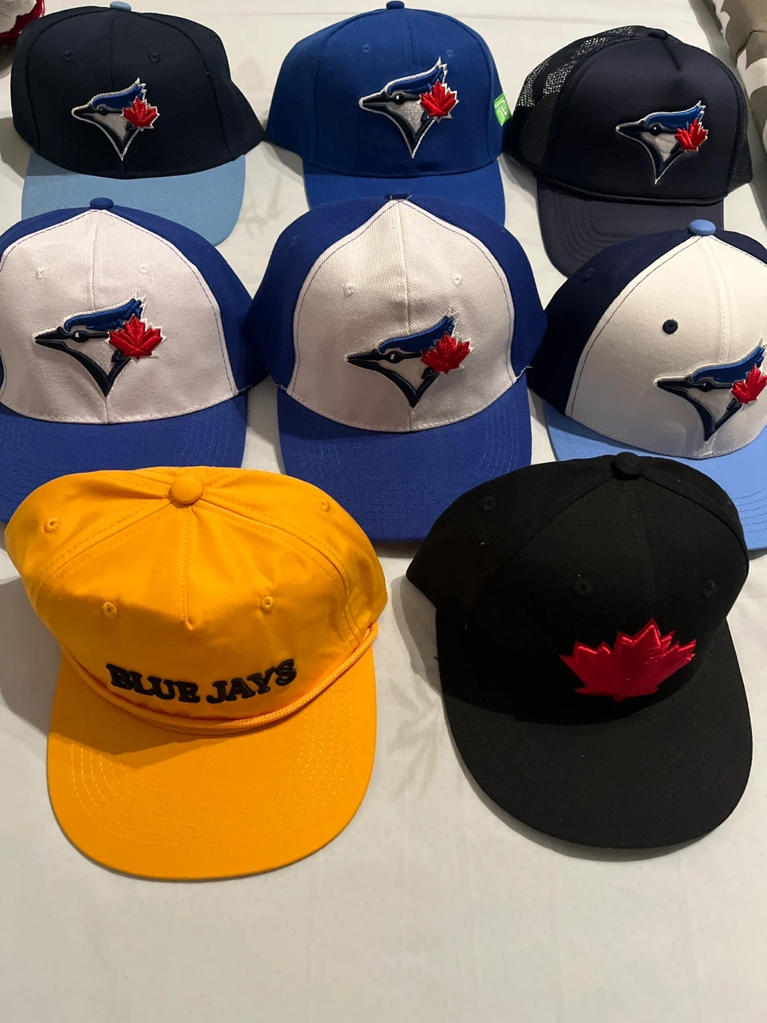 Got a bunch of Blue Jays baseball caps up for grabs! They come in different styles and colours. Perfect for showing your team spirit!