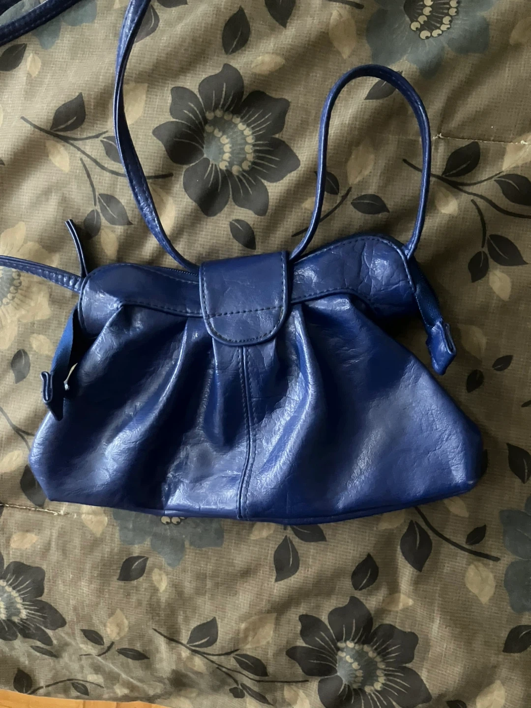 Blue Faux Leather Clutch Purse