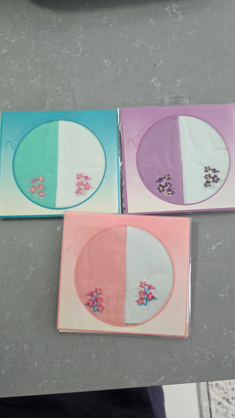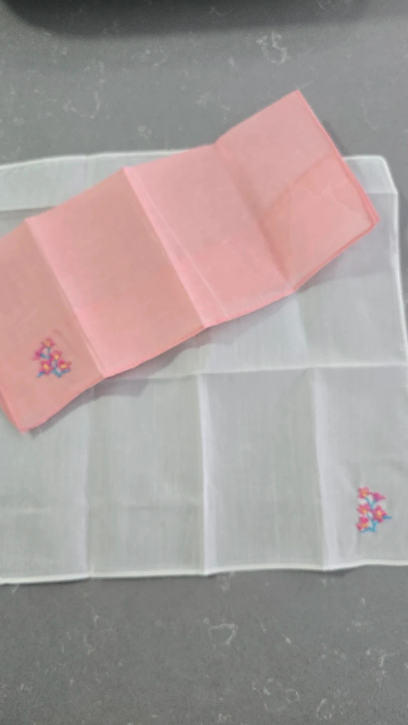 Set includes two ladies' handkerchiefs, one pink and one white. Both have delicate floral embroidery. Perfect for adding a touch of classic style to your day.Also available in bulk.