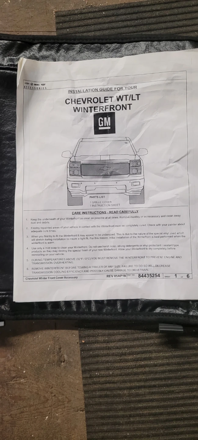 Buy & SellChevrolet WT/LT Winterfront CoverChevrolet WT/LT Winterfront Cover$51Chevrolet WT/LT Winterfront cover accessory. Includes installation instructions. Black vinyl material.ConditionNewWHERE TO MEETCheck LocationView MapSELLER839325City Centre212 reviews0 chats·0 favorites·1 viewsSEND CHAT TO SELLERHi 839325! I’m interested in your listing.Hi 839325! I’m interested in your listing.Get the Karrot app to chatSign In to chat