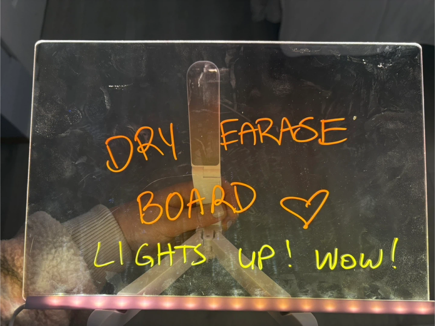 This is an LED dry erase board. It comes with a set of colourful markers and a USB power cable.