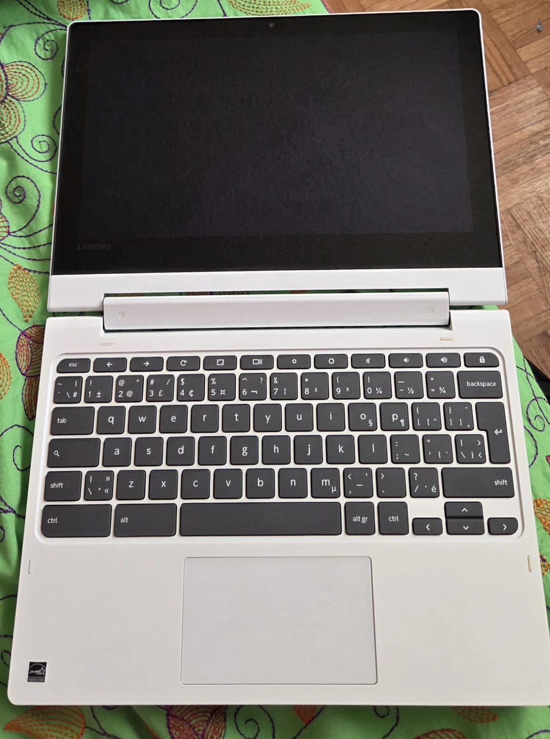 Selling unused Lenovo C330 2-in-1 Chromebook in Blizzard White! It features an 11.6" HD touchscreen, MediaTek MT8173C processor, PowerVR GX6250 graphics, 4 GB LPDDR3 RAM, and 64 GB eMMC SSD. Runs on Chrome OS.