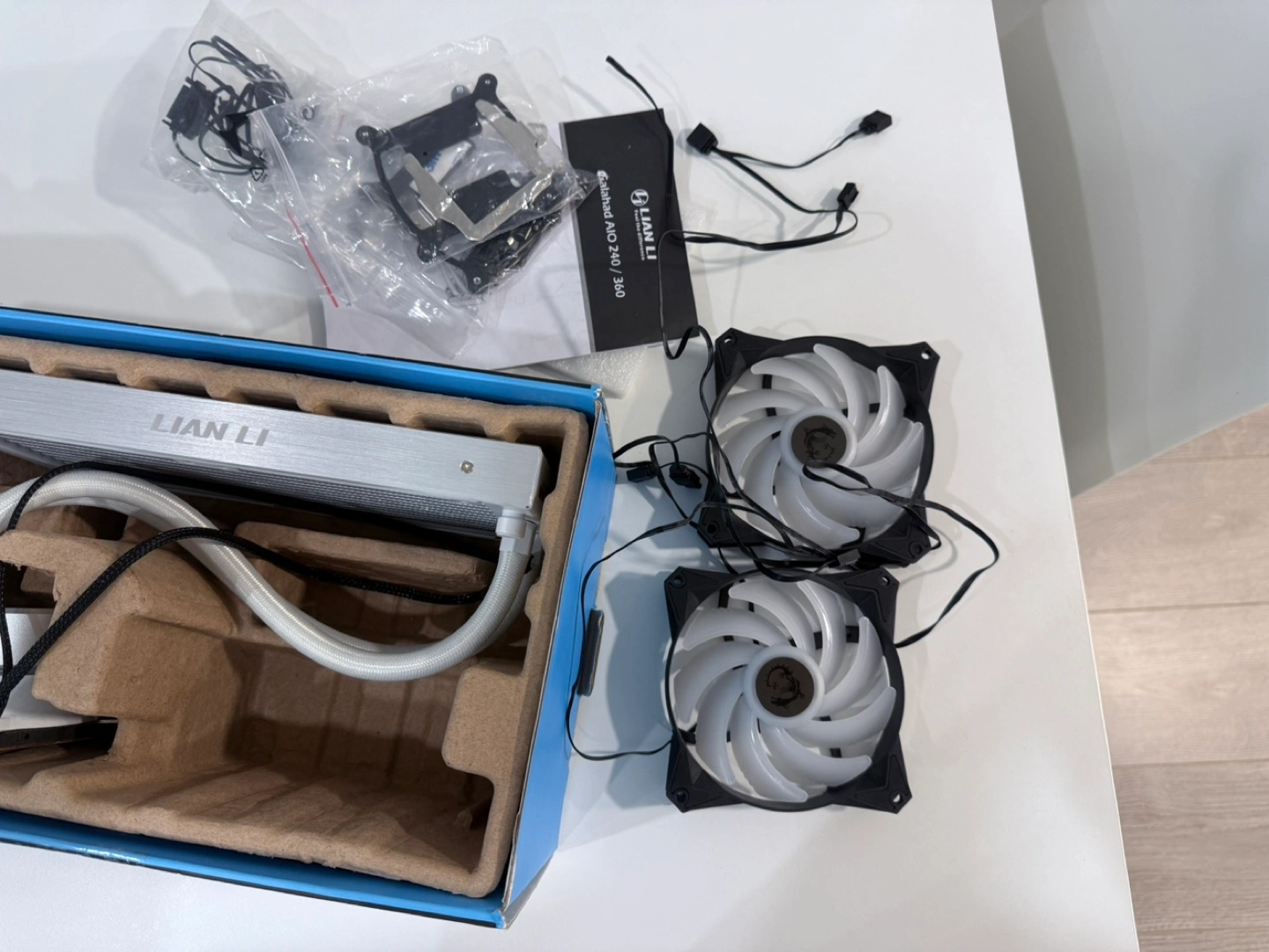 Brand new, unopened Lian Li Galahad AIO 240 RGB CPU cooler. Includes all original accessories and packaging. Closed-loop all-in-one cooler. Premium materials. Excellent cooling solution.
