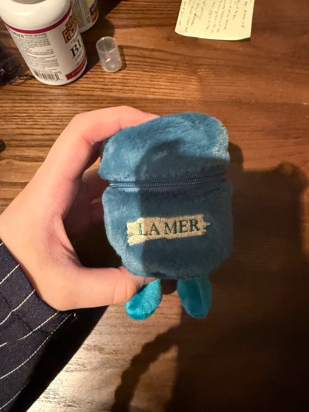 LA MER pouch features a moon zipper pull and a keyring. Its very soft and fluffy, it can fit coins or a lipgloss. Received as a gift