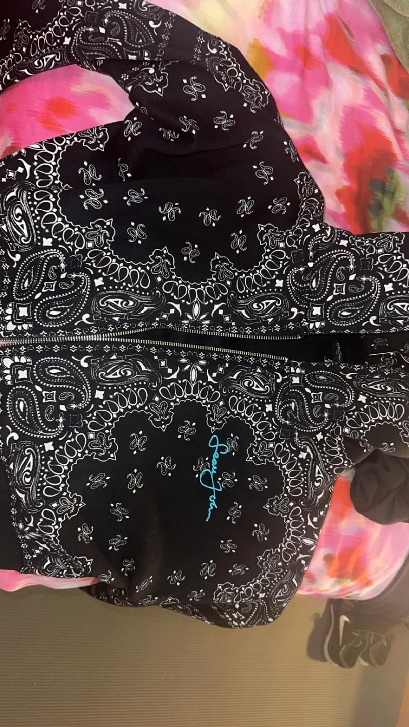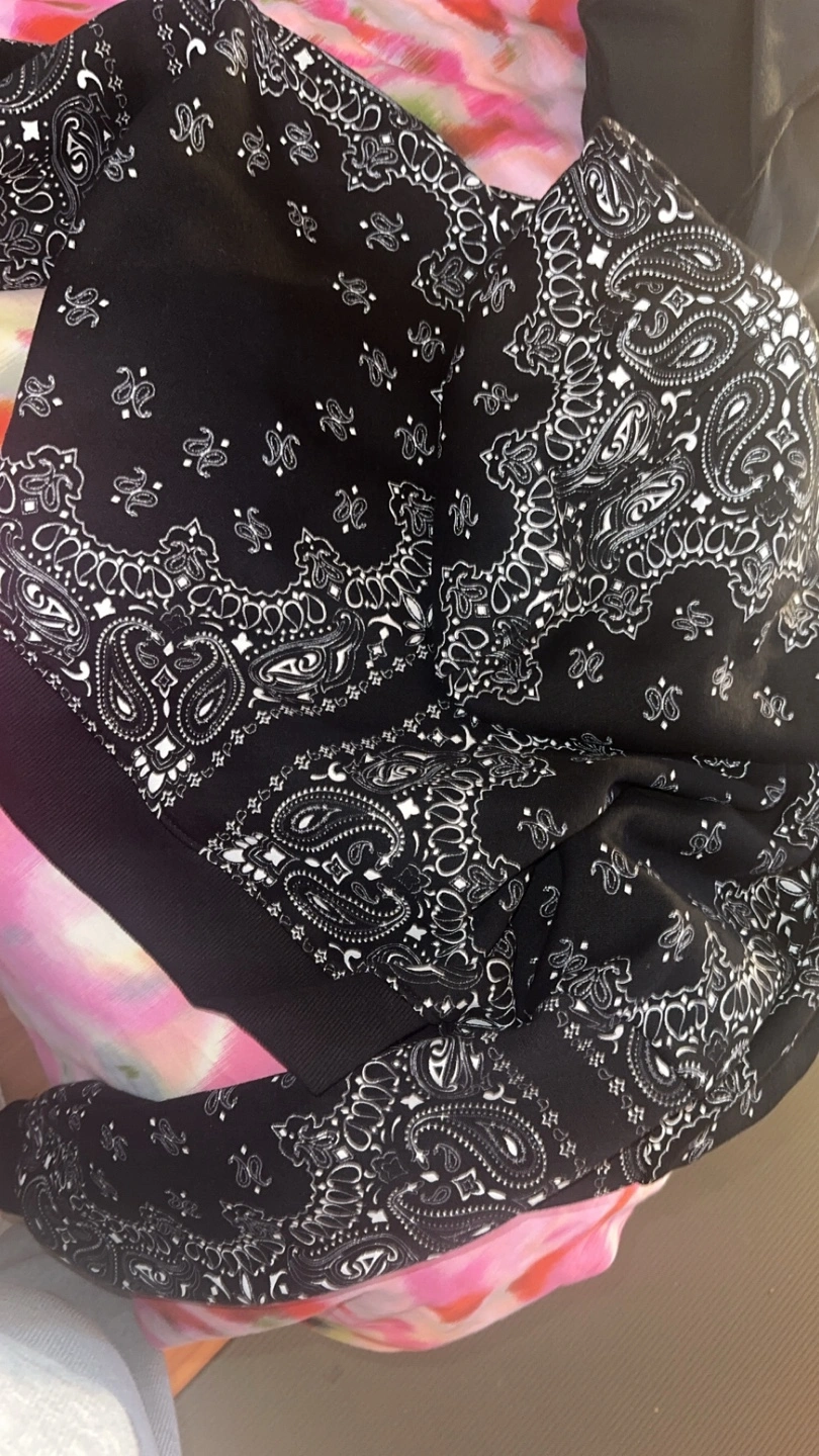 Black hoodie with white bandana print. Full zip up and hood. Crop hoodie Sean Jean