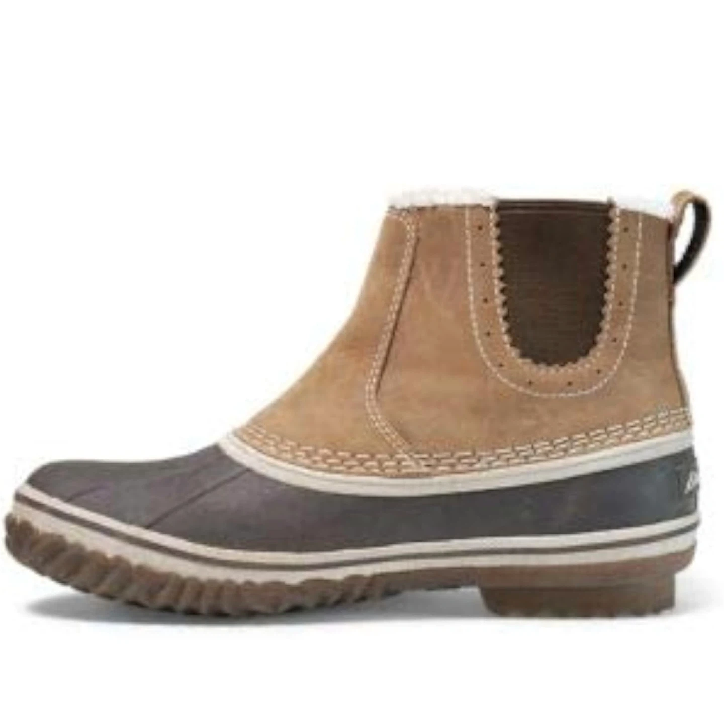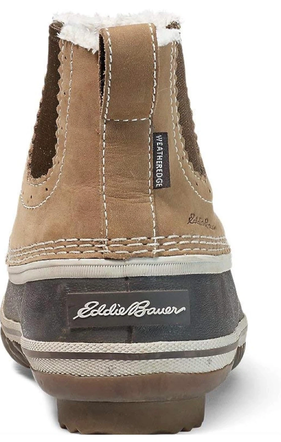 These Eddie Bauer boots are made for staying warm and dry. They feature a water-resistant lower and a cozy, faux-fur lining. Elastic side panels allow for easy on and off. Traction sole for grip. Made with leather and rubber.