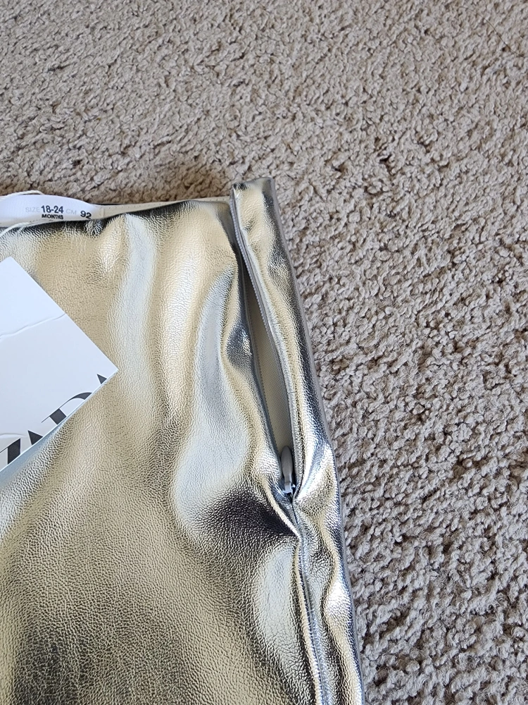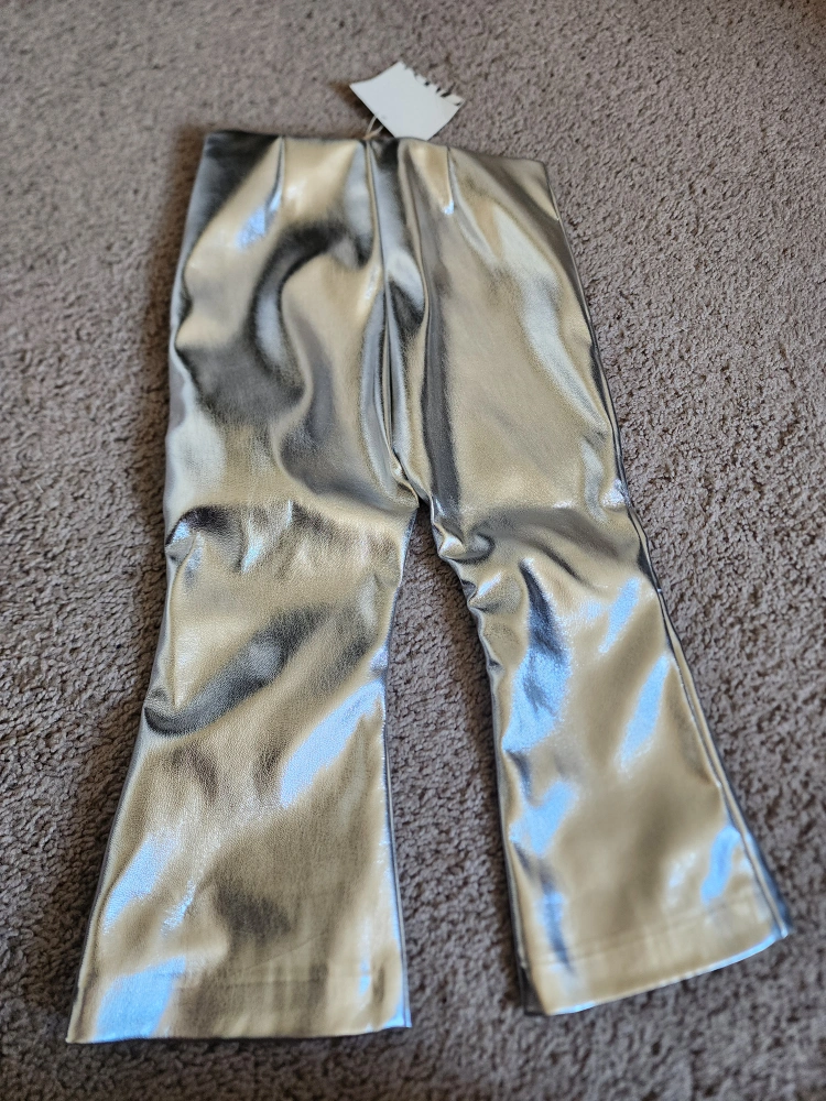 Silver metallic pants in a flare style. Size 18-24 months.
