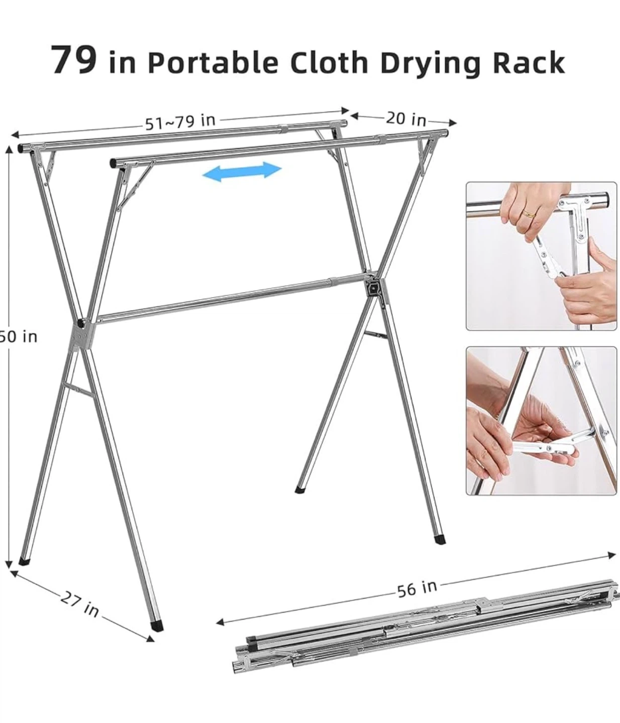 funest Clothes Drying Rack, 79 Inches Adjustable & Foldable