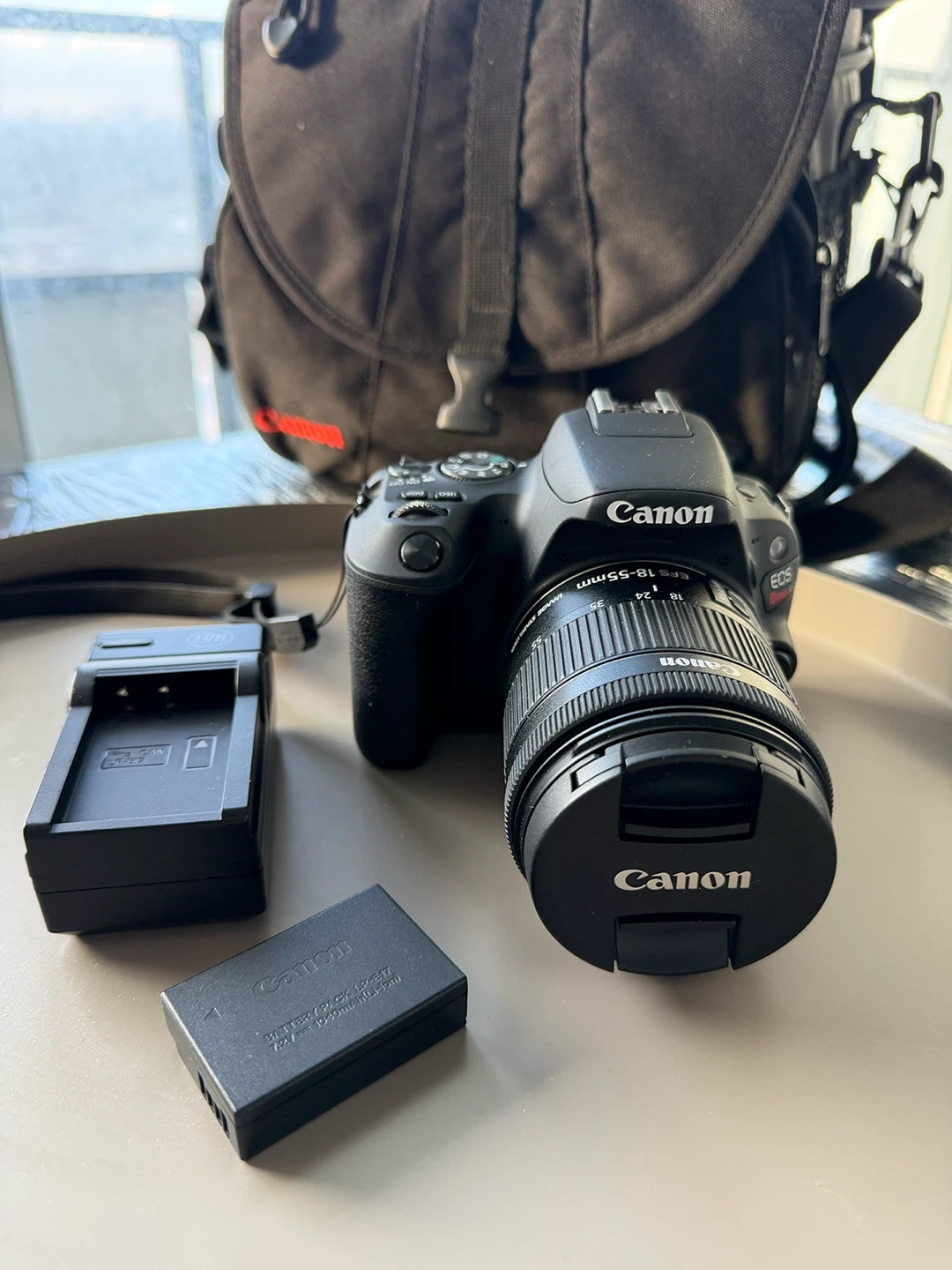 Selling Canon EOS Rebel SL2 (EOS 200D) DSLR camera in like-new condition. Included in the bundle: