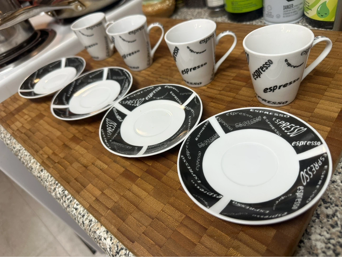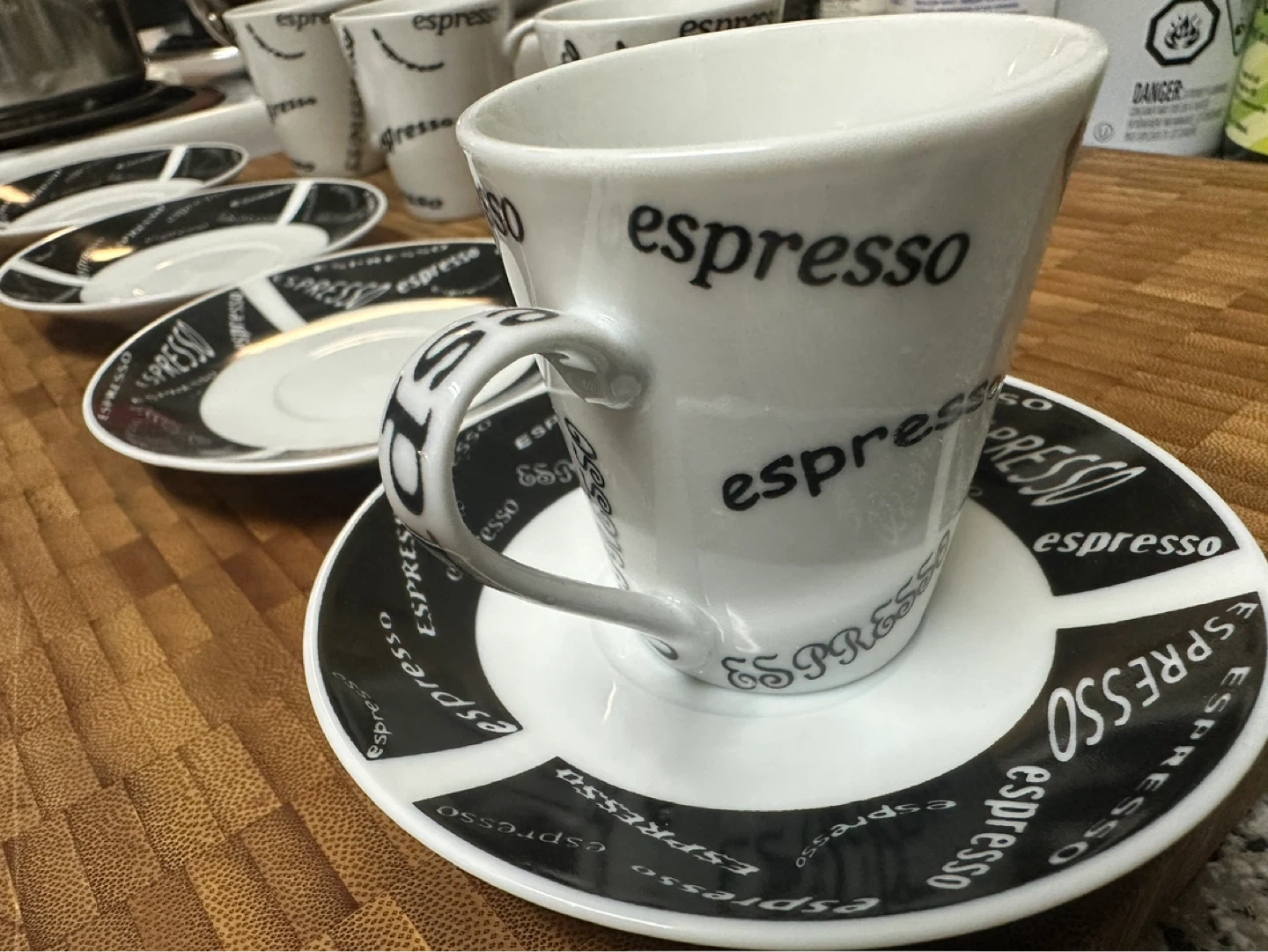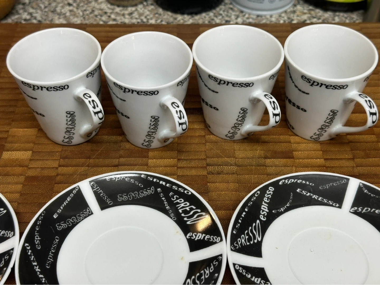 Buy & SellJust Mugs Espresso Cups and Saucers SetJust Mugs Espresso Cups and Saucers Set$25Set of four white espresso cups and saucers. Cups and saucers feature black "espresso" text design. Made in China.ConditionLike newWHERE TO MEETHowie AveView MapSELLERverifiedErbenAustin Heights700 reviews0 chats·0 favorites·1 viewsSEND CHAT TO SELLERHi Erben! I’m interested in your listing.Hi Erben! I’m interested in your listing.Get the Karrot app to chatSign In to chat
