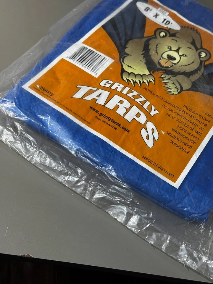 Protect your gear, cover outdoor items, or use for camping with this durable Grizzly 8' x 10' tarp! Heavy-duty and versatile, ideal for outdoor use, construction, or storage. Unopened, just a small tear on original packaging. Easy to fold and store. Pick up location is near Dufferin & Finch. Available Mon - Fri (10 am - 2 pm & 8 pm - 9 pm), Sat & Sun (flexible after 11:30 am). Please contact me to set up a date and time to meet up. CASH ONLY.