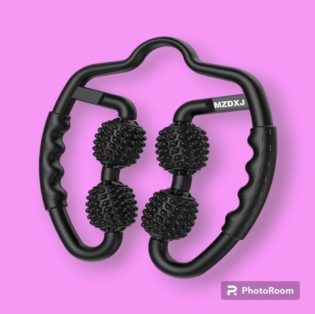 Flexible muscle roller with adjustable width. Ergonomic handle, anti-slip texture. Great for back, neck, arms and legs. Mimics a massage therapist's touch.
