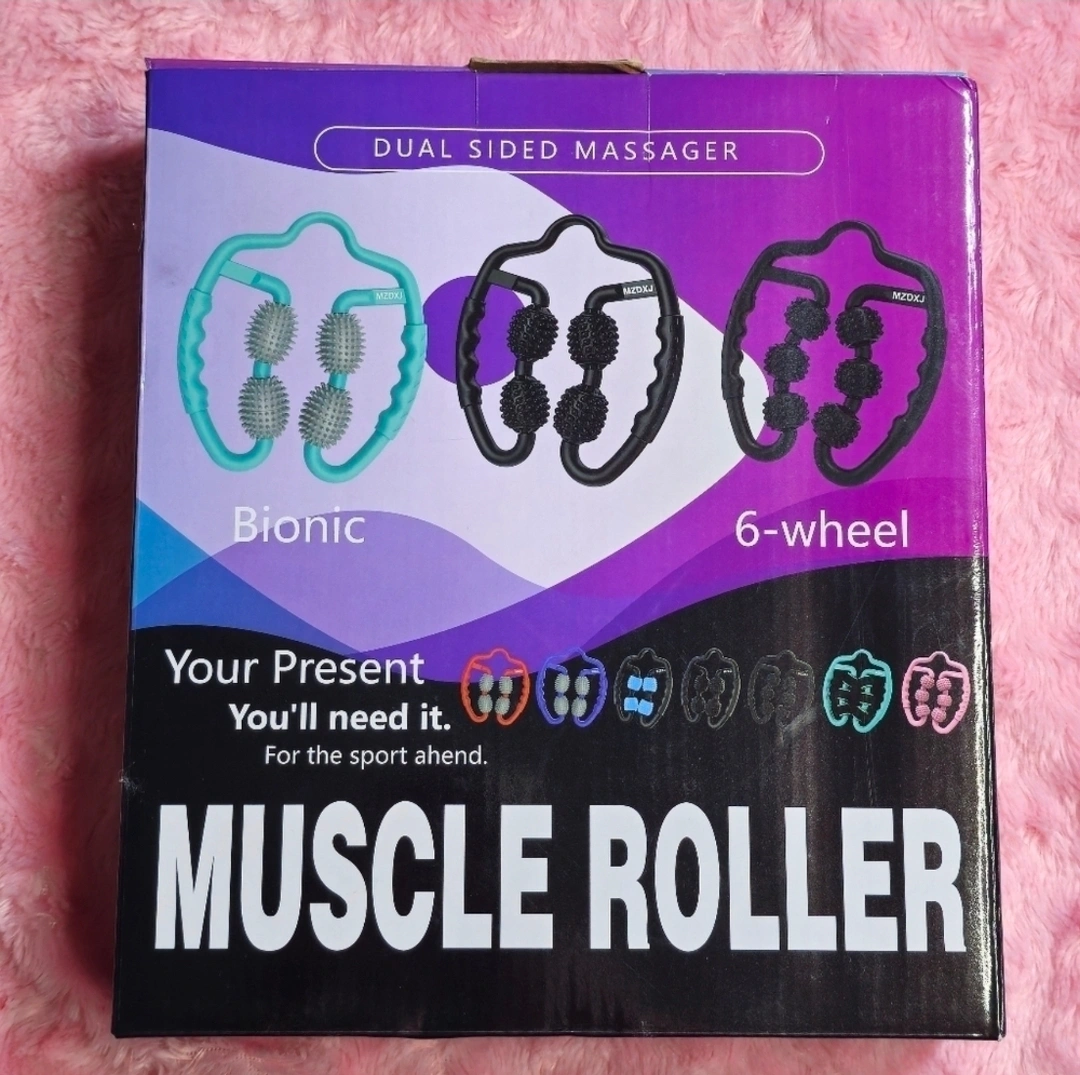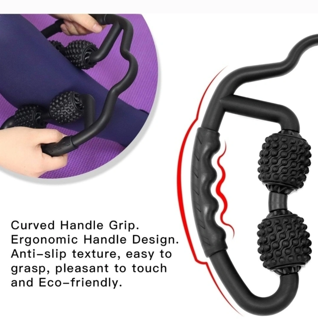 Flexible muscle roller with adjustable width. Ergonomic handle, anti-slip texture. Great for back, neck, arms and legs. Mimics a massage therapist's touch.
