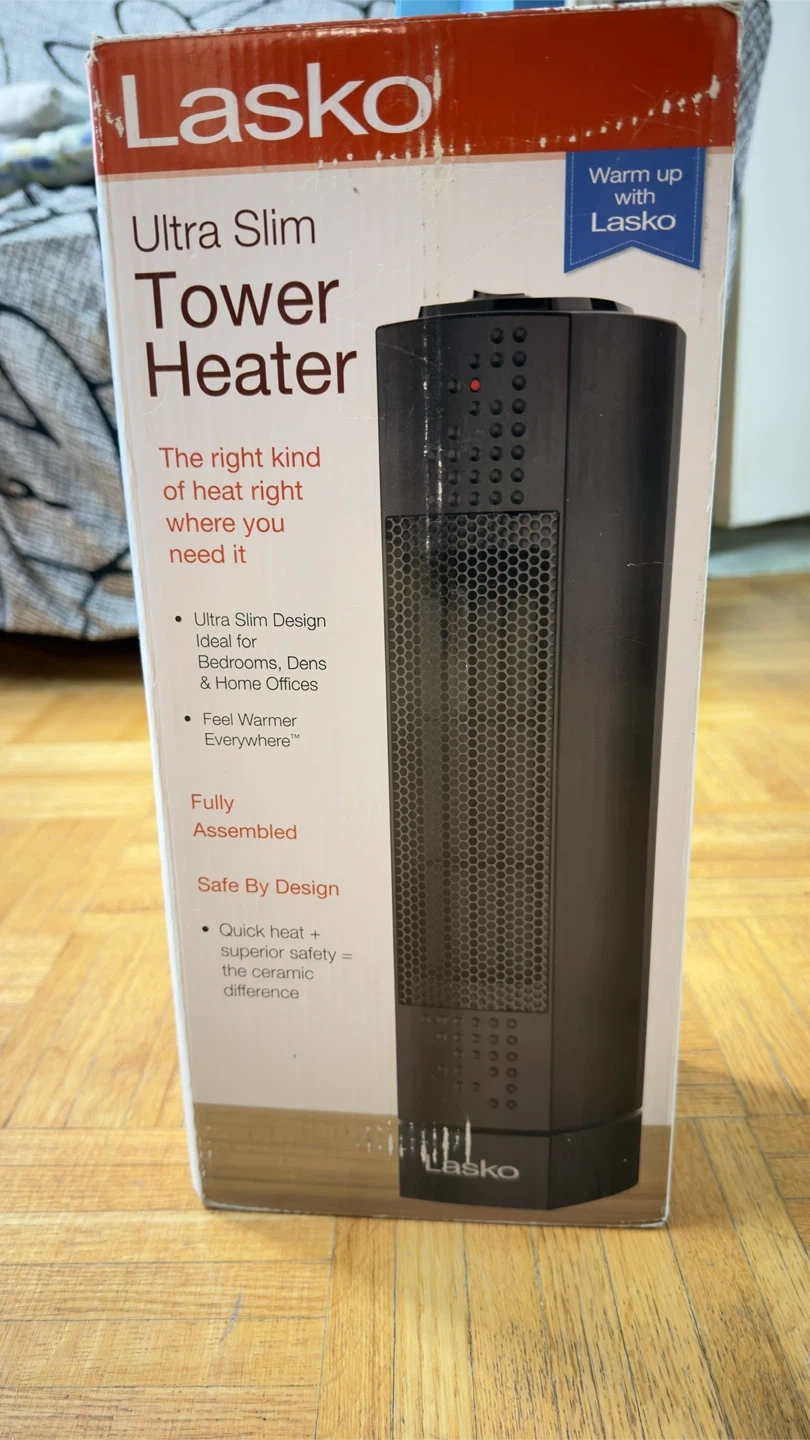 Selling a Lasko Ultra Slim Tower Heater in excellent condition! It comes in the original box and is fully assembled.