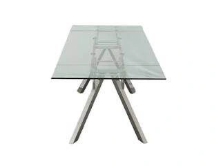 Glass Expandable Dining Table w/ 6 White Leather Chairs