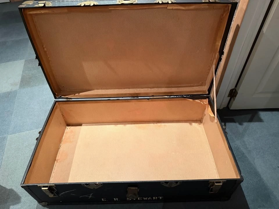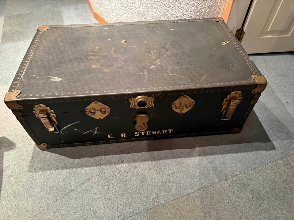 Add a touch of mid-century travel history to your home with this authentic 1950s steamer trunk. This rugged, industrial-style piece is perfect for a statement coffee table, end-of-bed storage, or a unique accent piece for any room.