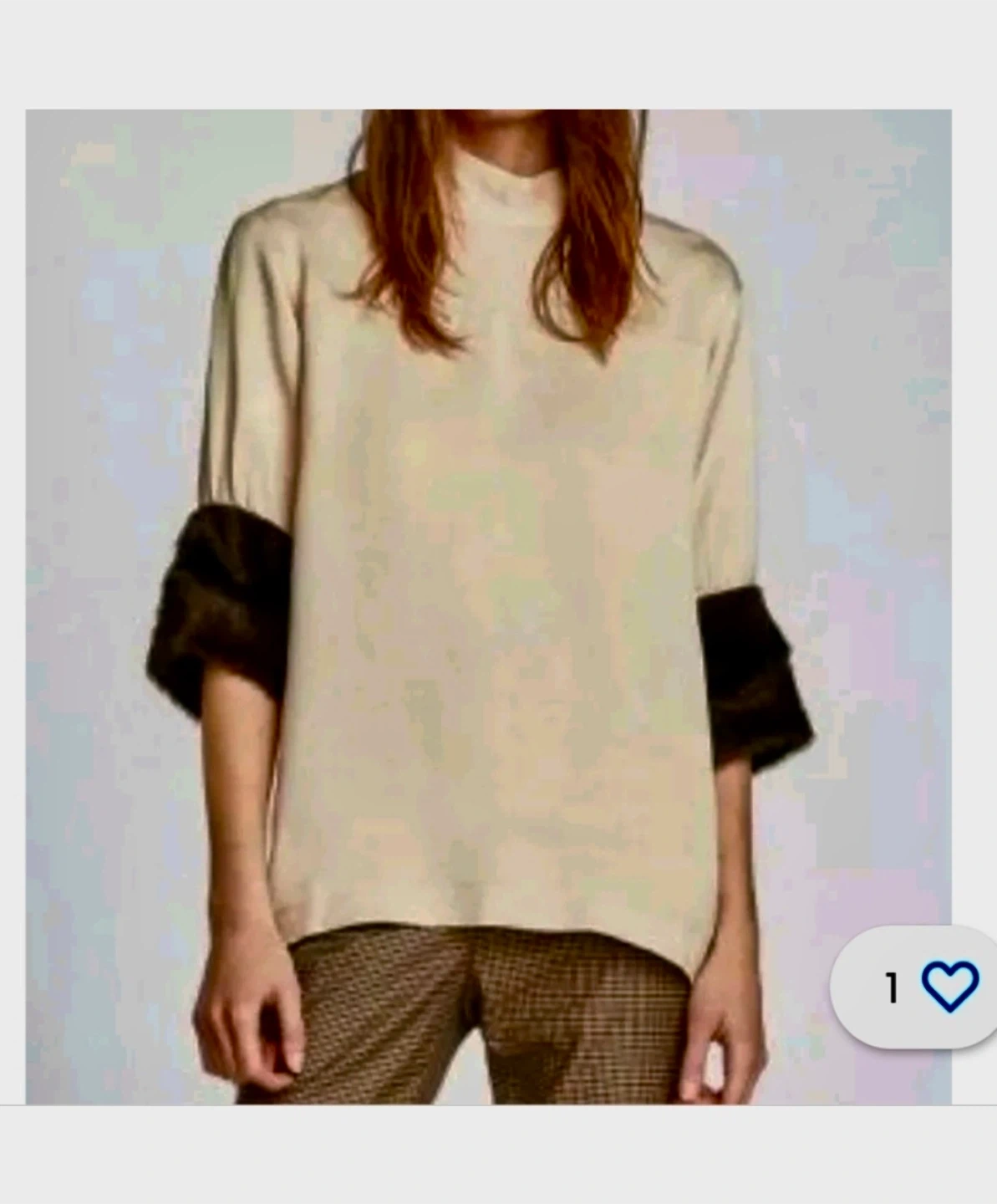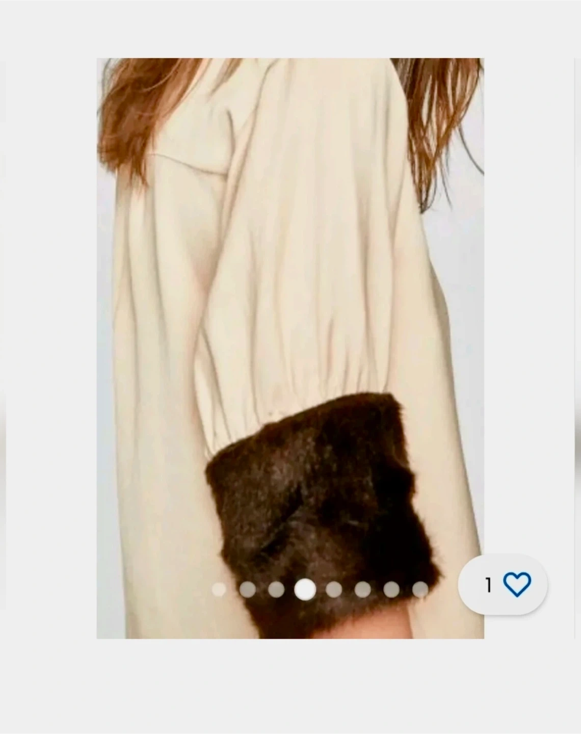 Cream Top with Dark Brown Faux Fur Cuff Detail|Zara|size S