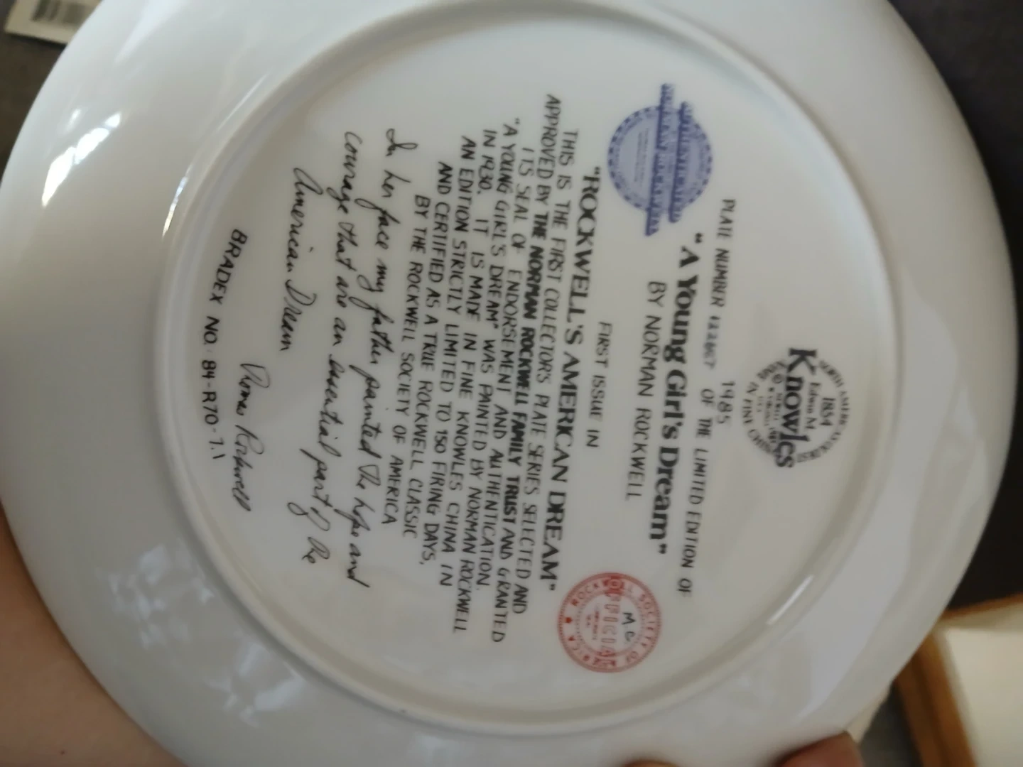 Collector's plate with certificate of authenticity