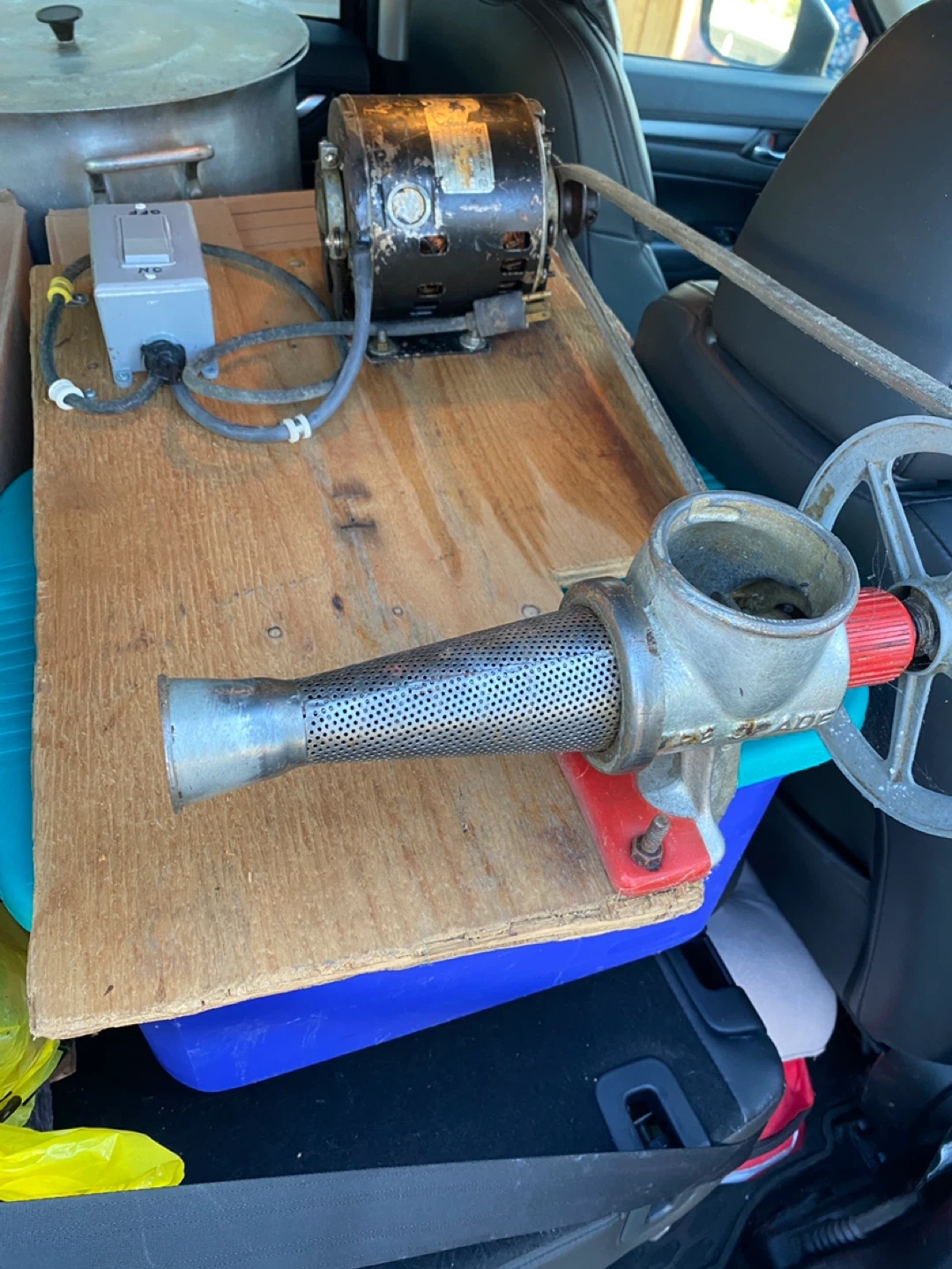 Selling electric tomato sauce machine. Has all parts and attachments. It's showing some signs of wear, but it's still functional and does the Job well. Please see photos for condition.