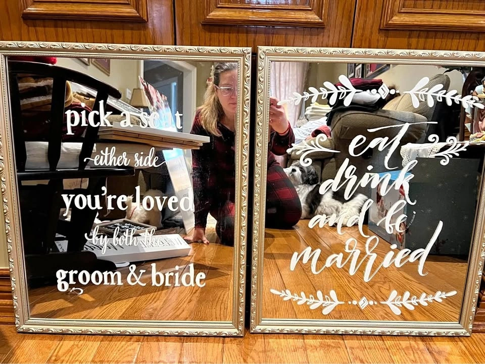Gold Mirrors -excellent condition-Pick a seat either side your loved by both the groom and bride & Eat drink and be married $60 for the pair