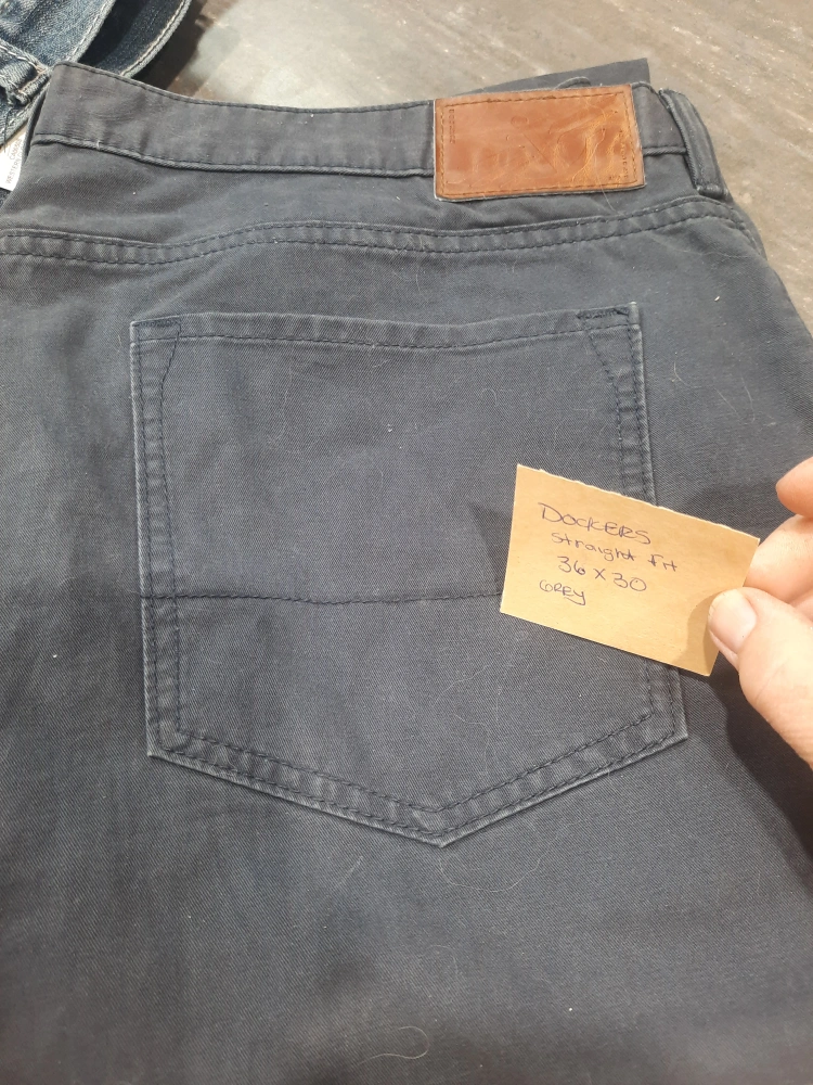 The pants are grey. They appear to have a straight fit. A great pair of pants for everyday use. They also have a leather tag on the back.