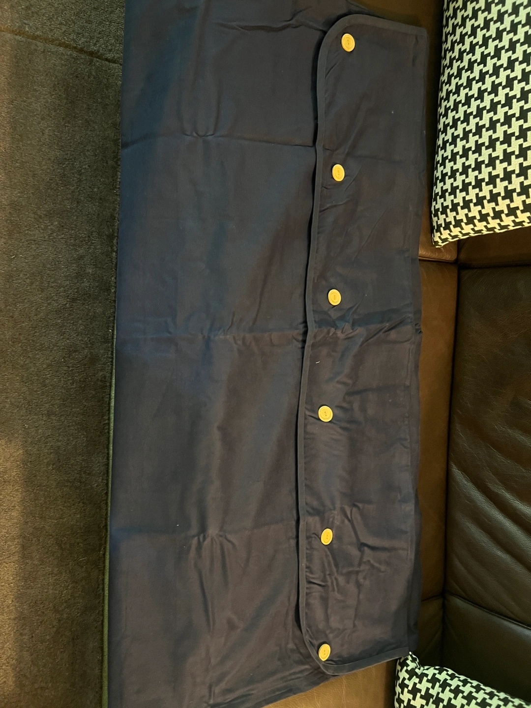 Navy blue $100 luxurious cotton fabric. Features wood accent buttons.