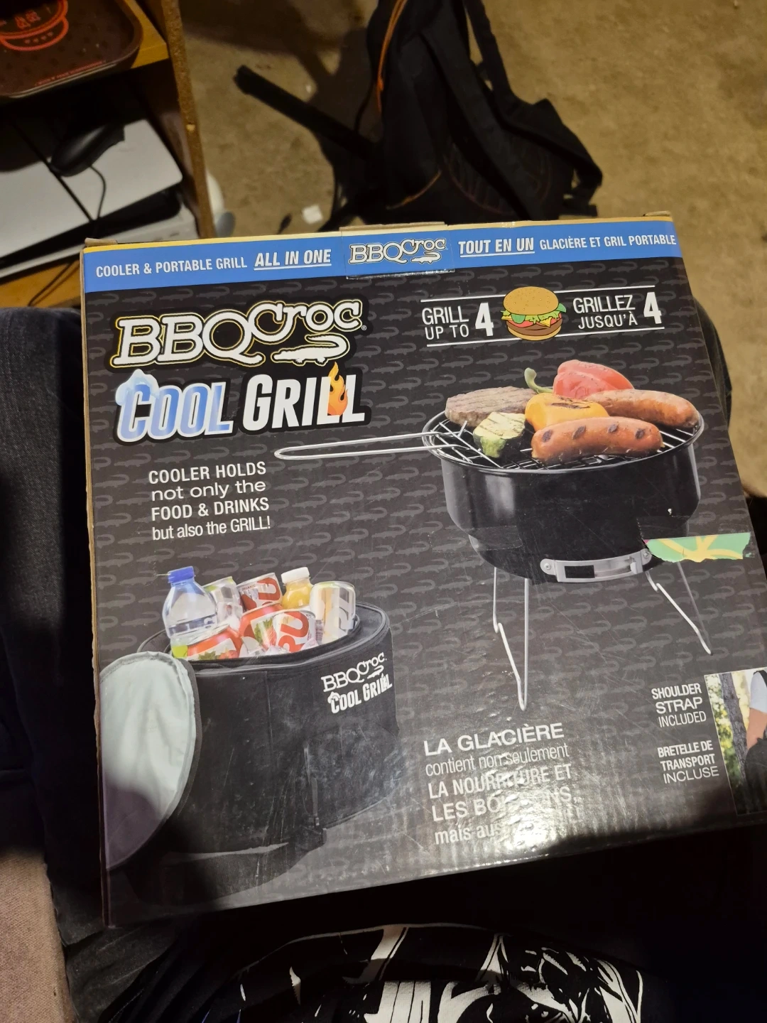 Selling a BBQ Croc Cool Grill, it's a cooler and portable grill all in one! It can grill up to 4 burgers at a time. It also includes a shoulder strap for easy transport.