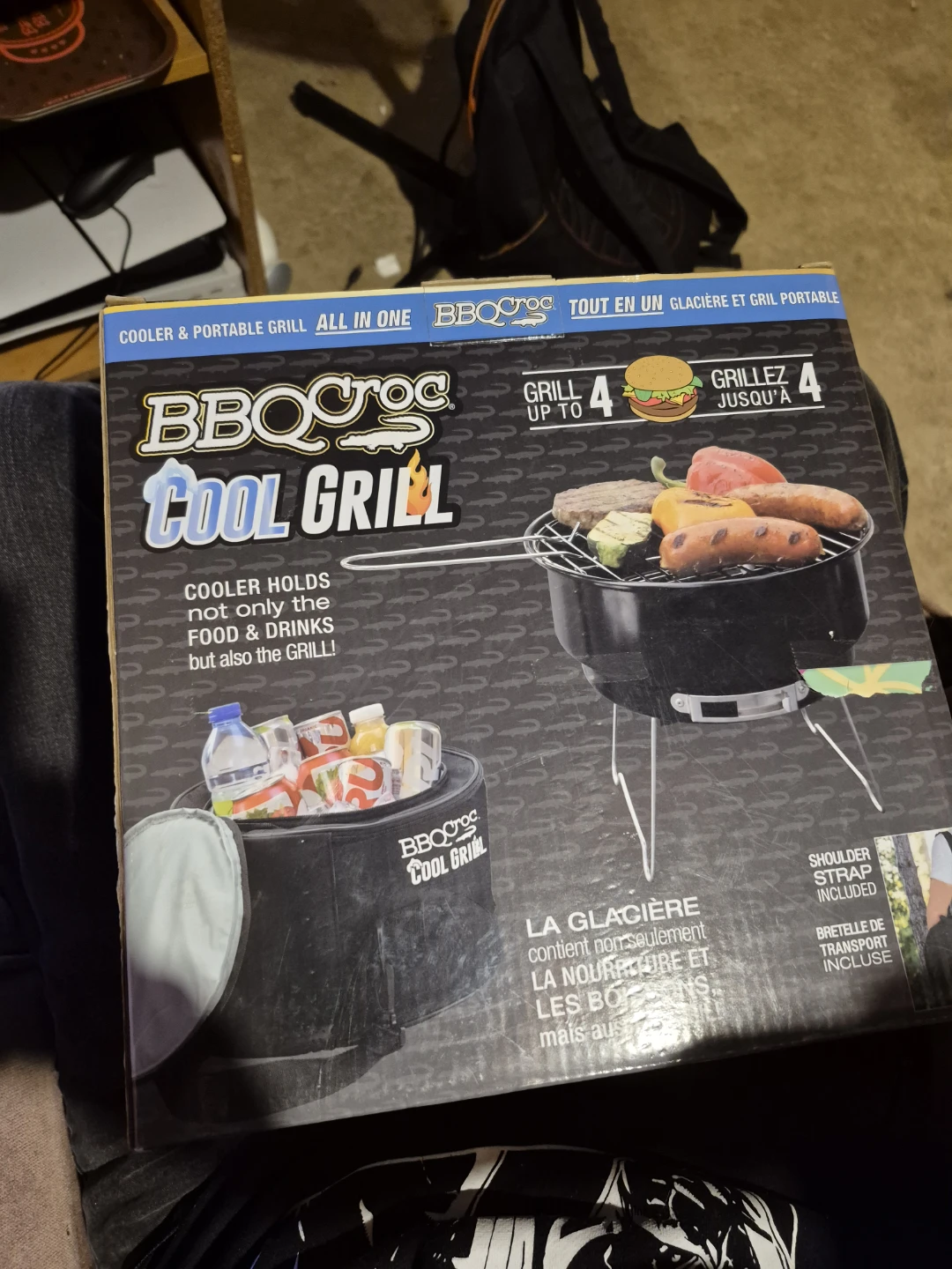 Selling a BBQ Croc Cool Grill, it's a cooler and portable grill all in one! It can grill up to 4 burgers at a time. It also includes a shoulder strap for easy transport.