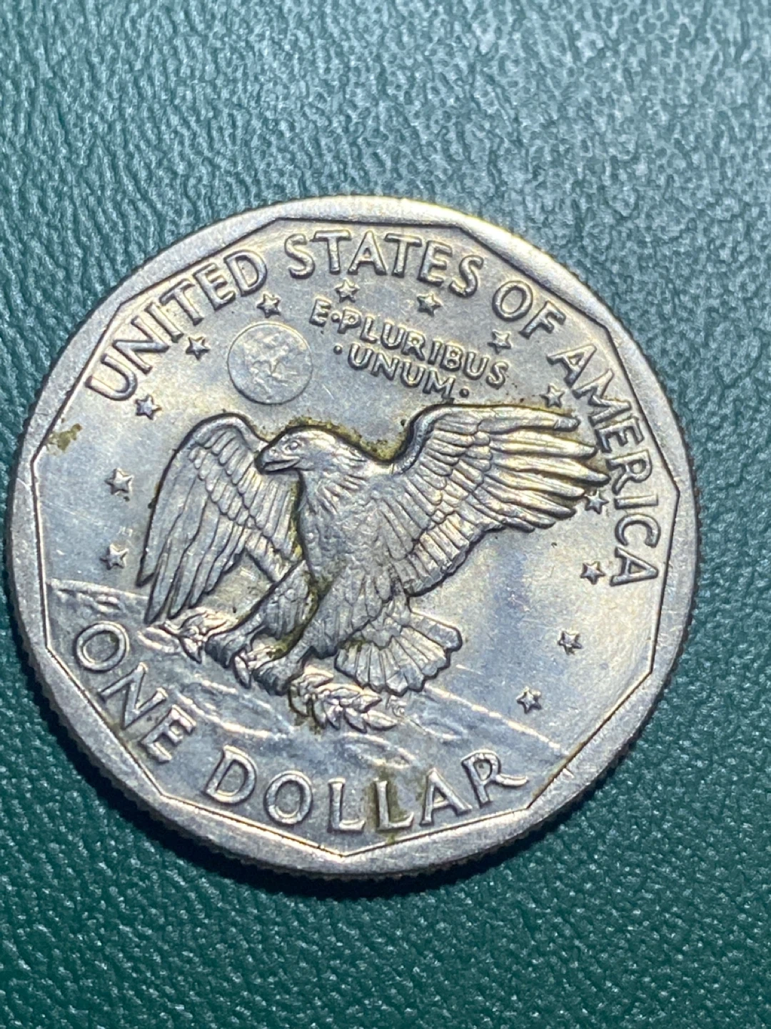 This is a 1979 Susan B. Anthony dollar coin. It's made of copper-nickel clad. The obverse features a profile of Susan B. Anthony. The reverse depicts an eagle landing on a branch. It's a one-dollar coin from the United States.