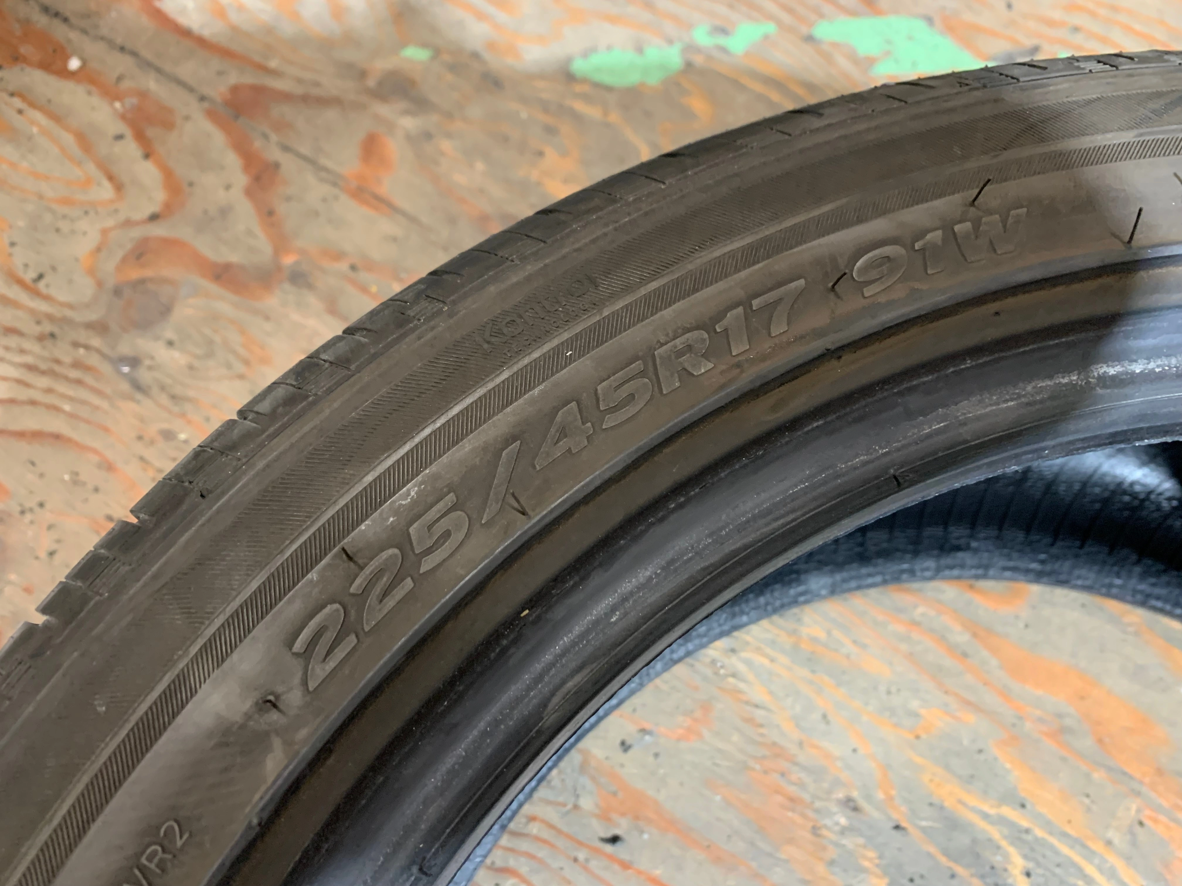 size 225/45/17 91W M+S Hankook Kinergy GT with no repairs and 85% tread