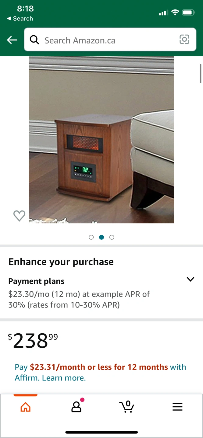 Element Large Room Infrared Quartz Heater with Wood Cabinet