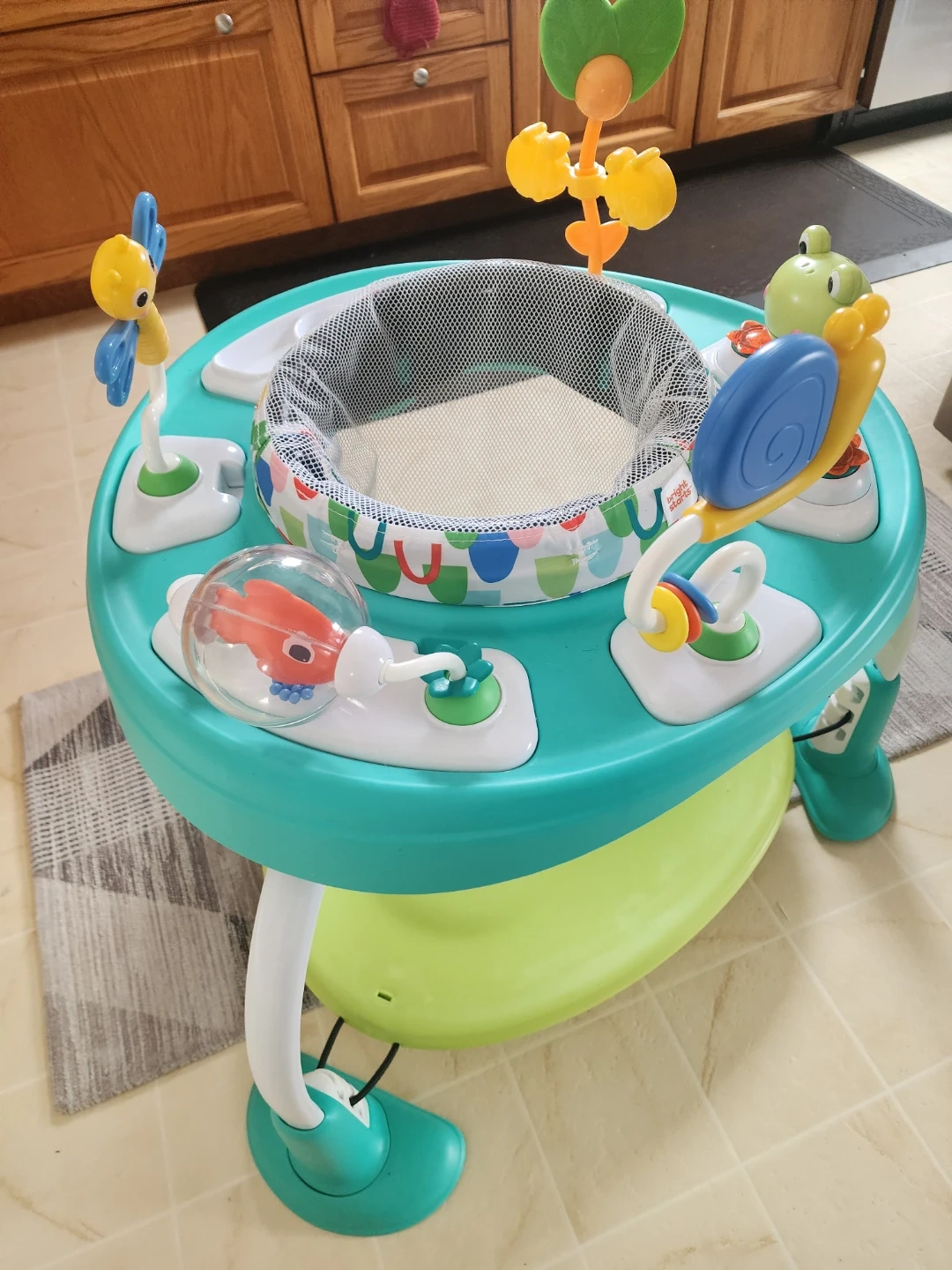 Activity bouncer with 3 feet plate heights. Also has insert for toy storage when no longer using the seat. My kids loved it but they have outgrown it. Smoke free home.