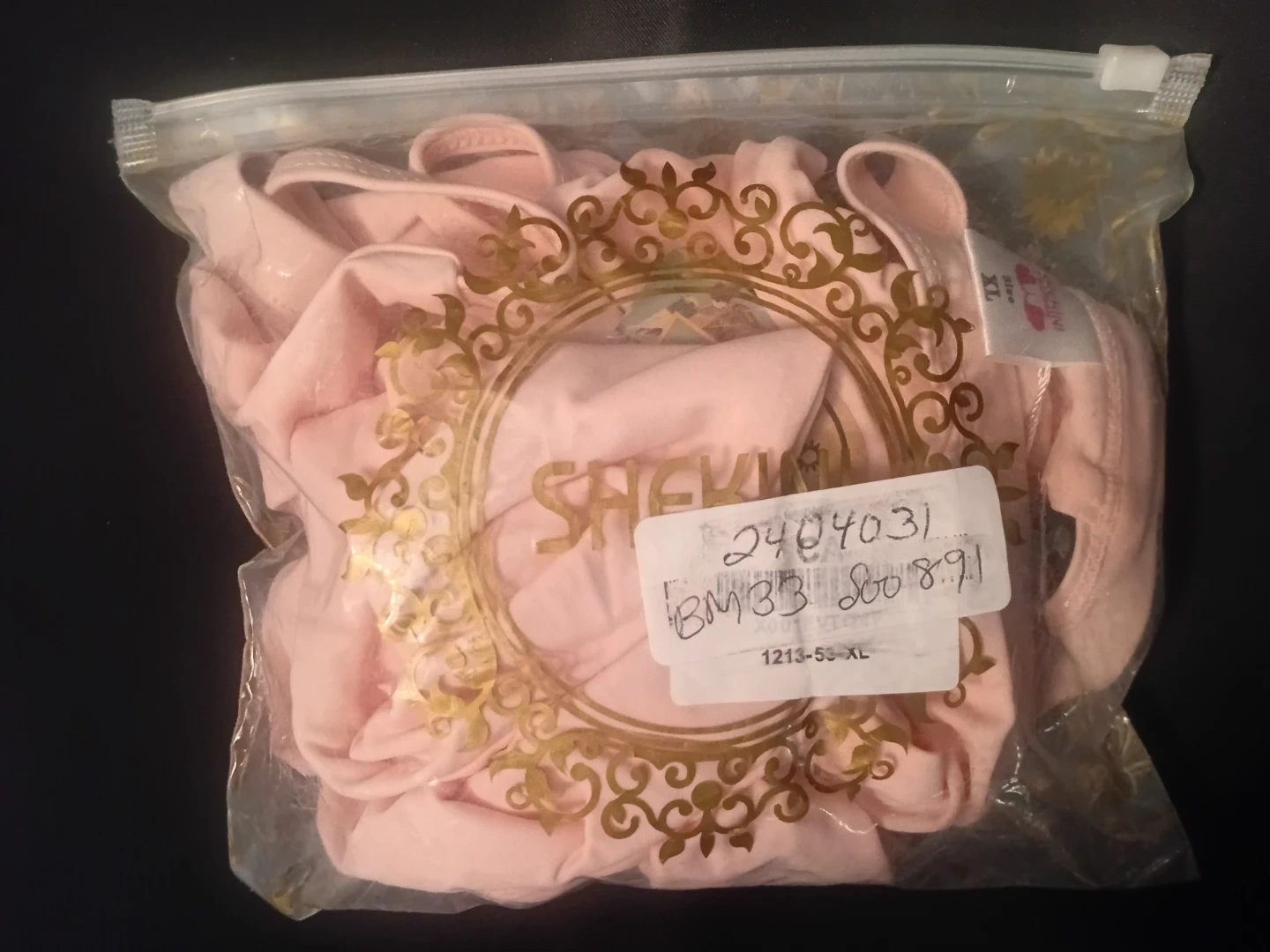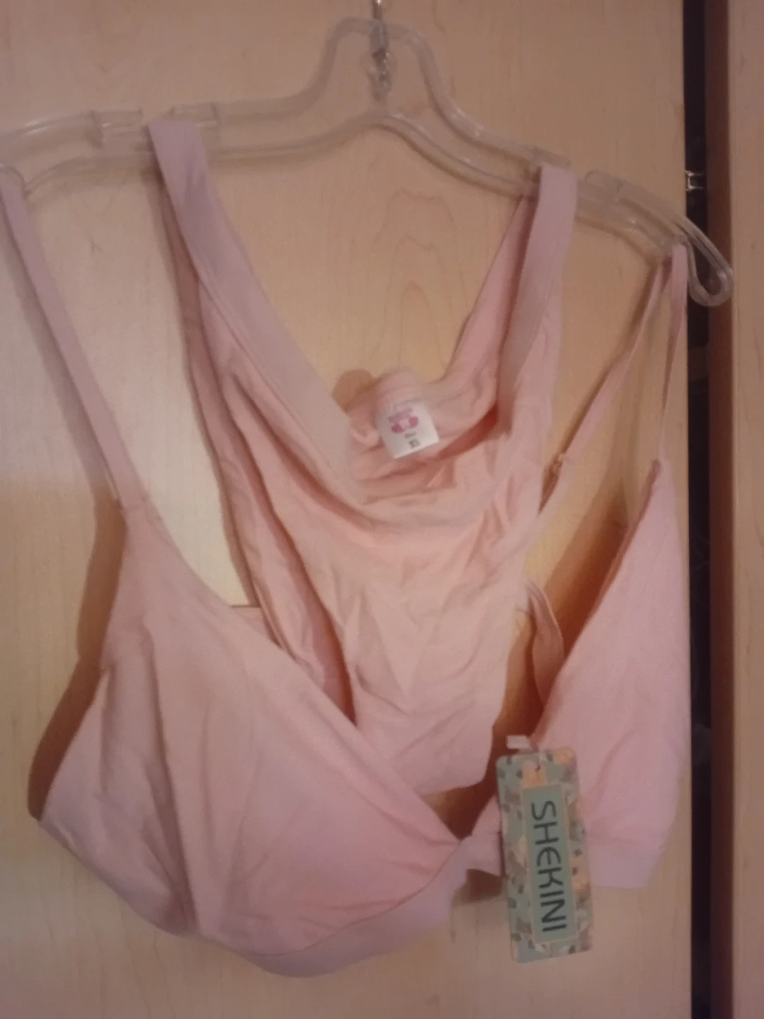 This is a Shekini pink swimsuit in size XL. It's a two-piece set. The material is soft and stretchy.