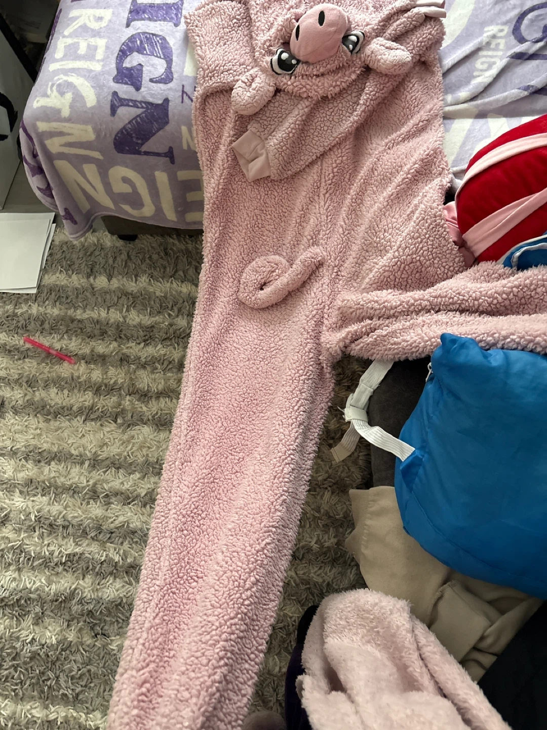 Super cozy pink pig onesie pajamas! Made from soft fleece material for ultimate comfort. Perfect for lounging around or a fun costume.