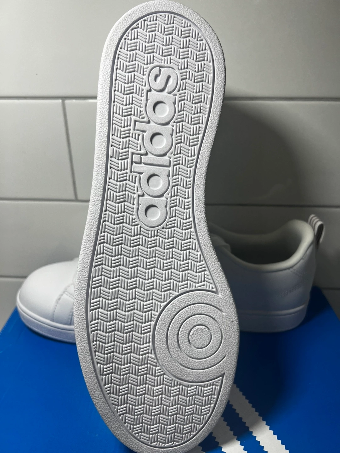 New woman’s Adidas grand court sneakers with rose gold stripes.