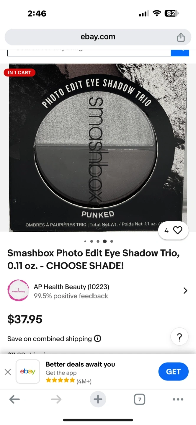 This is the Smashbox Photo Edit Eye Shadow Trio in the shade Punked. It's a compact trio with two complementary shades for easy eye looks. Net weight is 0.11 oz. / 3.2 g.
