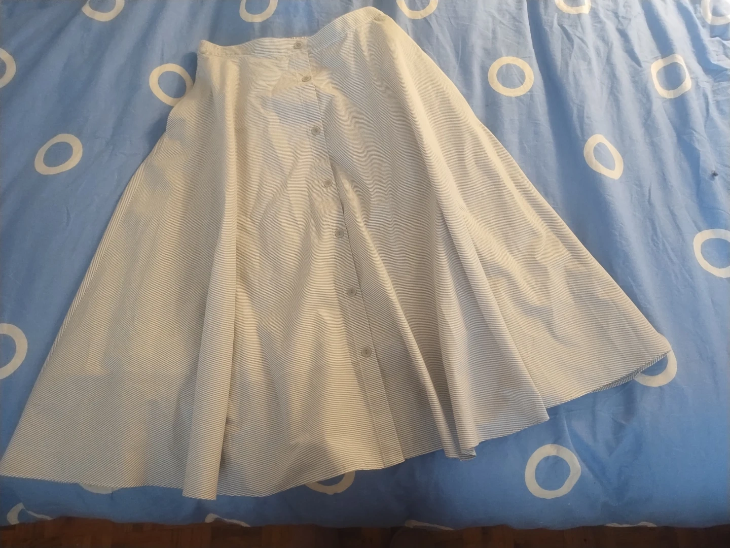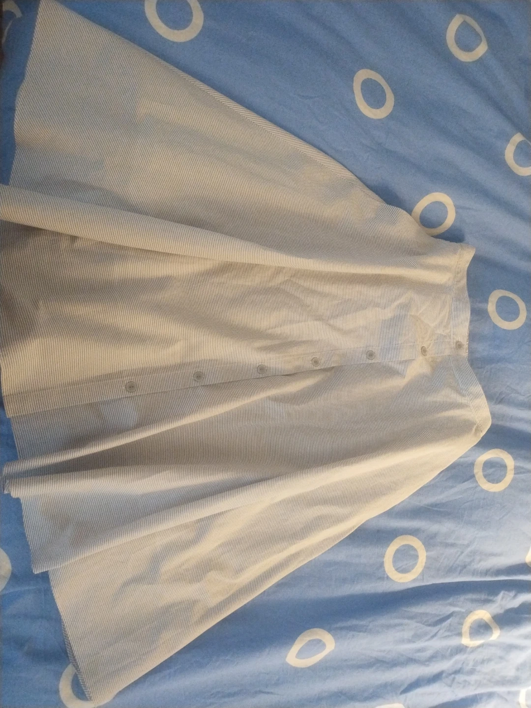 A lovely striped Uniqlo midi skirt. It's a button-front style with a flowy A-line silhouette. Made from a lightweight cotton blend. With pockets